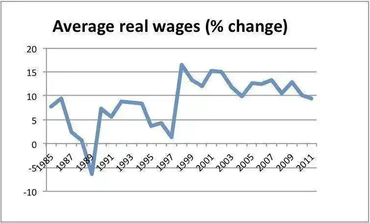 El porqué es muy sencillo: muestras el incremento de salarios, pero no muestras el IPC y la inflación, que en los últimos años ha crecido más que la RPC, que el PIB, y que los propios salarios.