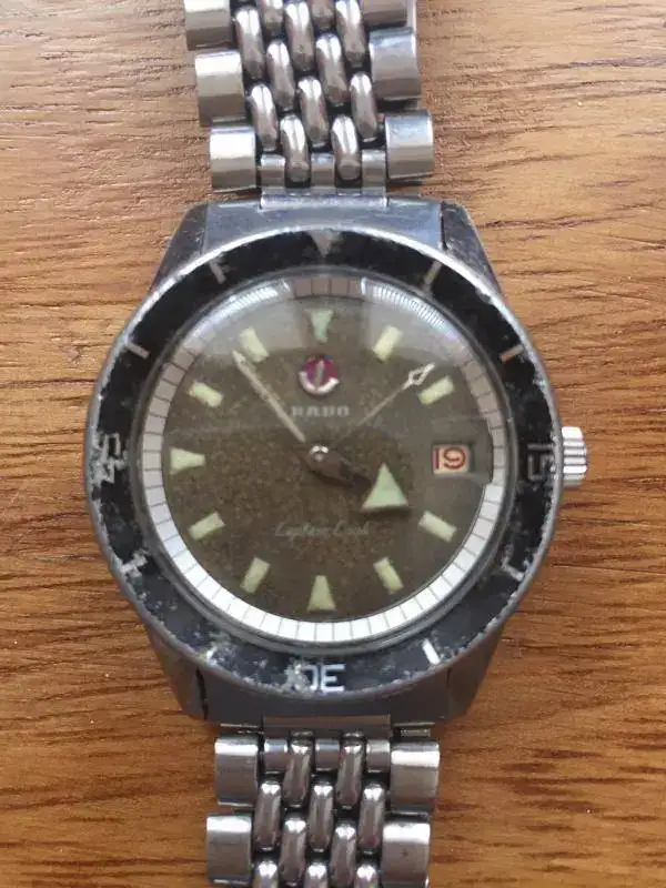 Seguimos con otro diver icónico, Rado Captain Cook MK1 de 1962. Este mantiene todos sus componentes originales : Dial tropicalizado por el tiempo, Logo del Ancla giratorio, agujas, con el triangulo grande en la horaria, a diferencia de los MK2 donde era la minutera la que llevaba el triangulo, Corona, Armis grano de arroz y bisel cóncavo característico, este con los golpes acumulados en casi sesenta años de vida. Alimentado por el calibre AS 1700 que compartió con otros iconos como el BP Cincuenta Brazas. Toda una joya que pese a su tamaño compacto llama mucho la atención cuando se lleva puesto. Finalmente subo foto de la pareja. Un saludo a todos y buen fin de semana.