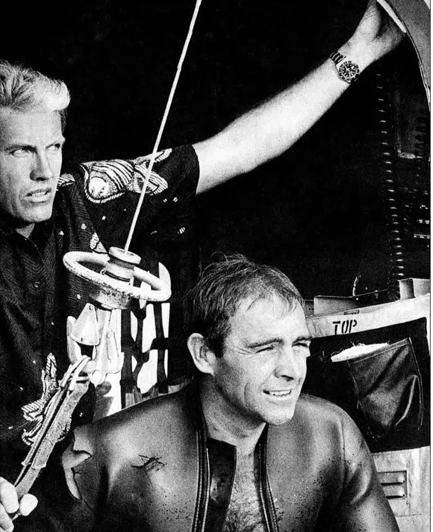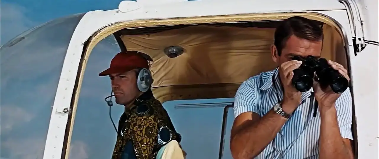 Por cierto, en Thunderball hay bastantes errores de continuidad y baile de relojes. A veces lleva el Breitling detector Geiger, a veces el sub. Cuando bucea para encontrar el avión estrellado y al falso piloto en unos planos no lleva nada y en otros el submariner. De la misma manera, el reloj del piloto en unos planos lleva el crono Breitling y en otros un crono de esfera blanca. El encargado de continuidad no previó los foros de relojes…