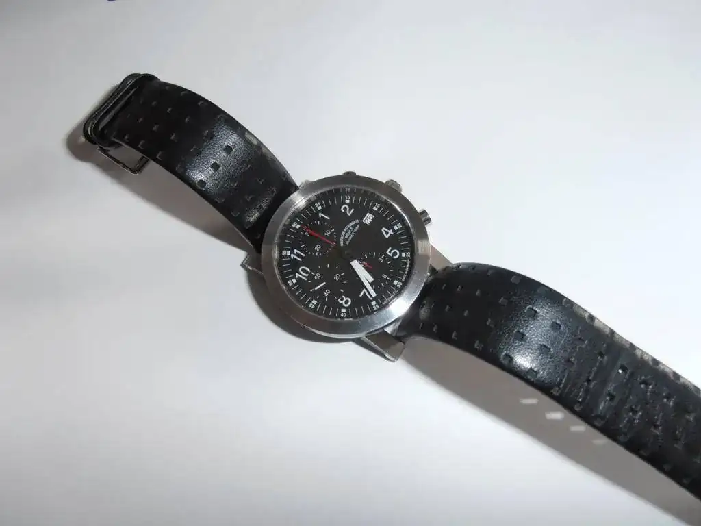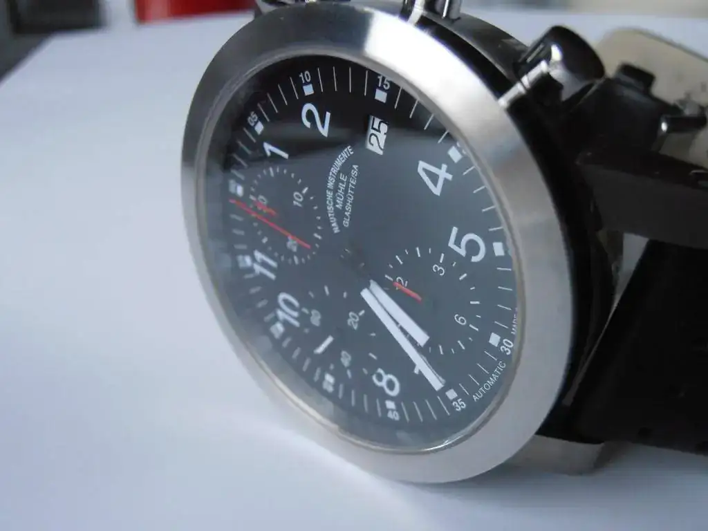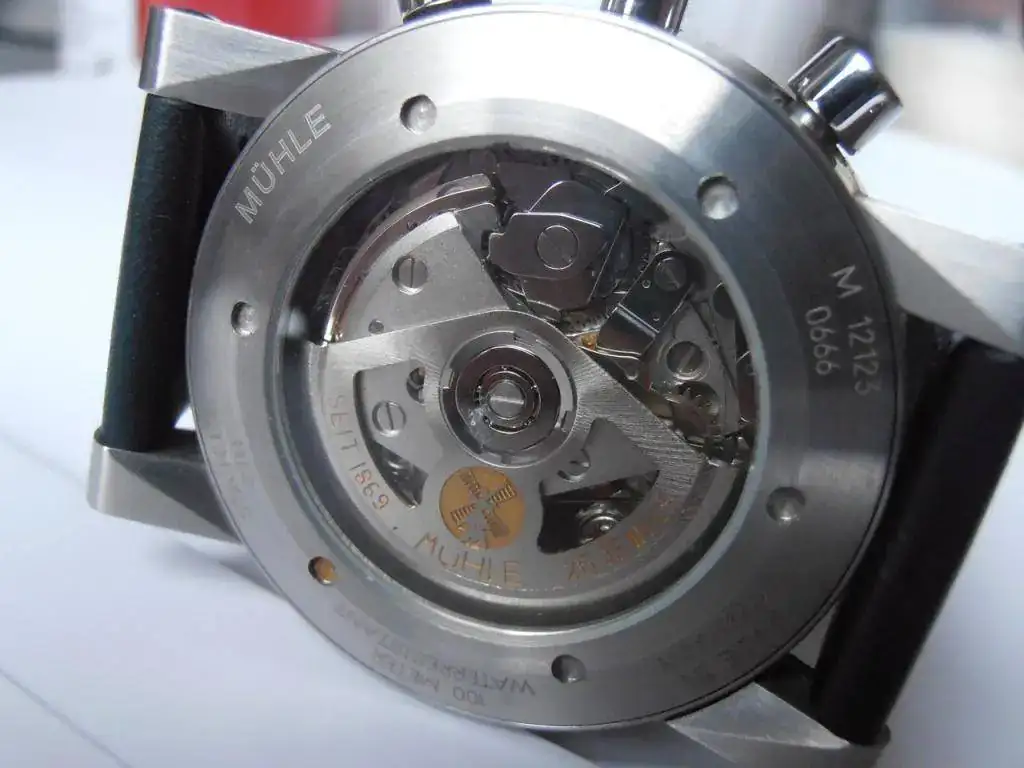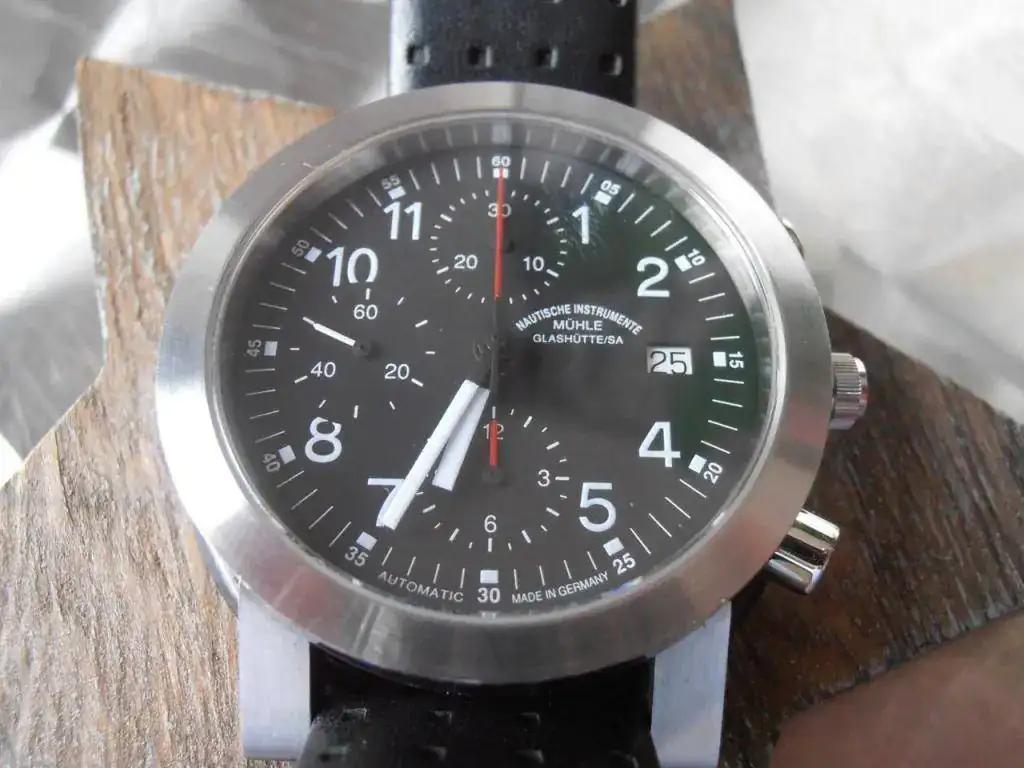 Comprado en Grassy en Madrid, caja de acero de 40 mm, calibre 7750 modificado por Muhle. Es un reloj muy poco visto, y difícil de encontrar.