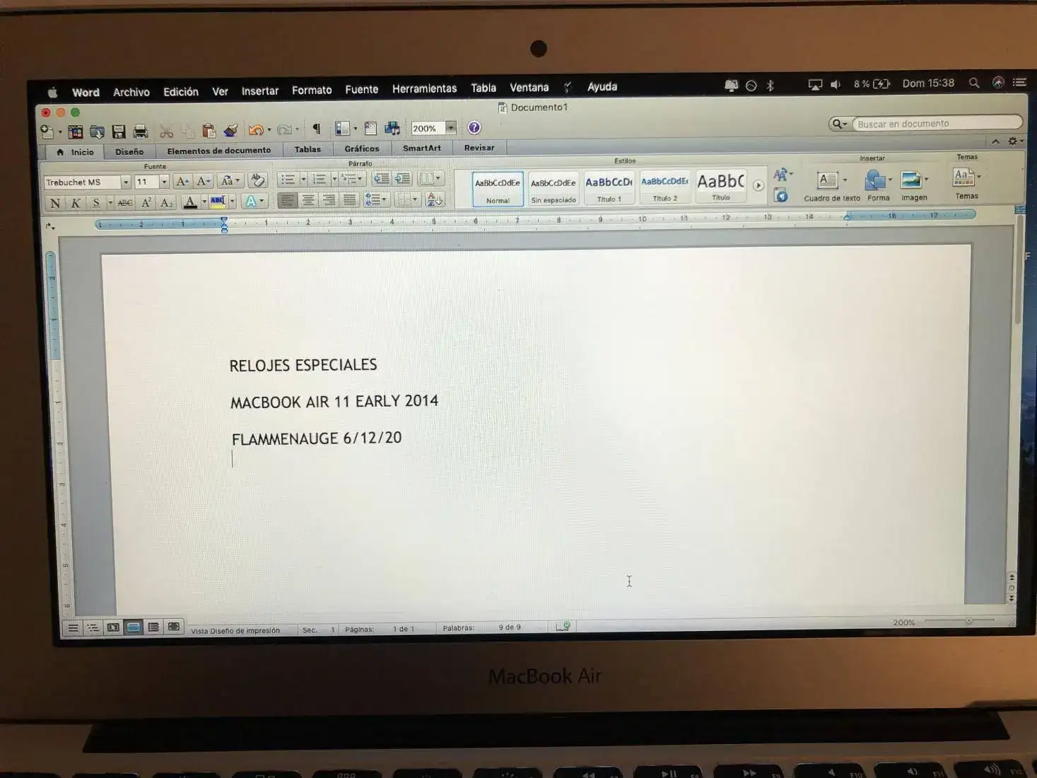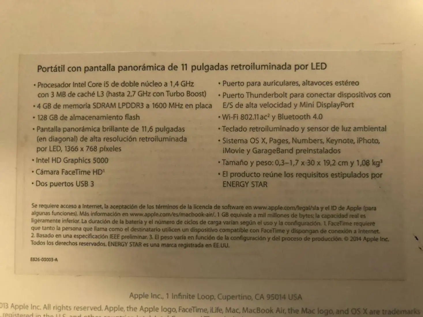 Vendo Macbook air 11, principios de 2014. Procesador I5 a 1, 4 GHZ, 128 disco duro SSD y 4 GB RAM. LLeva instalado IOS MOJAVE, aunque se entregaría reseteado a fábrica y la batería tiene 562 ciclos de carga. Estéticamente tiene tan sólo una pequeña abolladura en uno de los extremos, el resto sin ningún tipo de marca. Es un ordenador muy ligero, ideal para llevar en el día a día. El cargador no es original pero funciona perfectamente. Precio 300 €, envío aparte. Cualquier duda o cuestión estaré encantando de atenderla por privado.