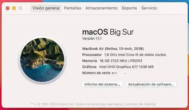 Vendo Apple Macbook Air 13" Core i5 1,6GHz | 16GB RAM | 512GB SSD comprado en abril de 2019 y con extension de garantía Applecare hasta 25/04/2022.