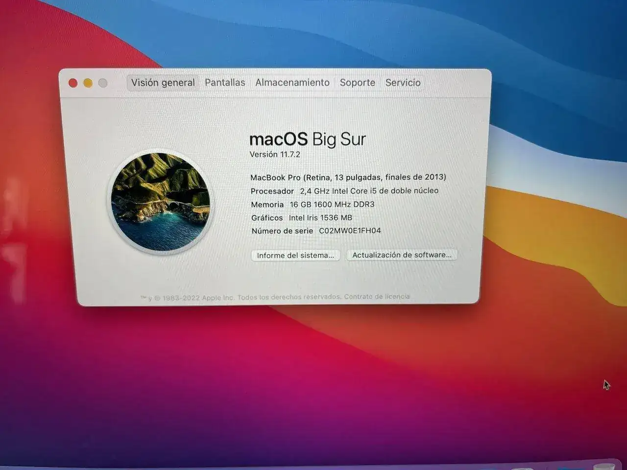 Se vende Macbook retina 13 pulgadas finales de 2013 con 16 GB RAM y 256 GB de disco duro SSD. Podéis ver las características técnicas en las fotos que se adjuntan. No presenta golpes ni marcas de uso y la batería tiene sólo 38 ciclos de carga pues fue sustituida en septiembre del año pasado. Hace unos años, la pantalla presentó el conocido problema de staingate o desprendimiento del tratamiento antirreflejos que provocaba manchas en la pantalla, pero fueron completamente removidas. Se entregará restaurado así como con su caja y cargador -no original, aunque comprado este mismo verano- Precio: 380 €.