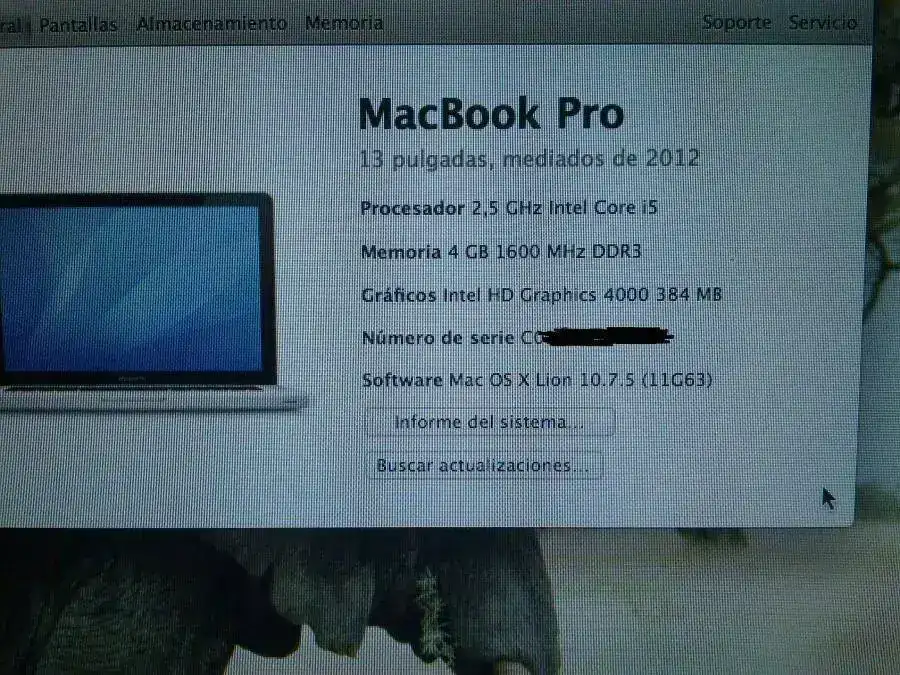 | Core i5 de Intel de doble núcleo a 2,5 GHz (Turbo Boost de hasta 3,1 GHz) |