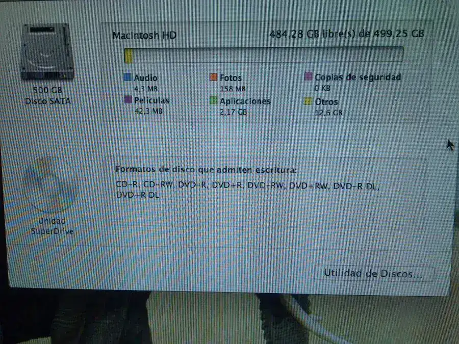 | SuperDrive de 8x de doble capa (DVD±R DL/DVD±RW/CD-RW) |