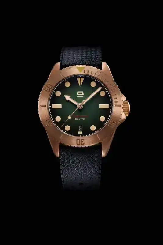 Bisel unidireccional de 120 clicks ya sea de bronce solido o inserto cerámico (hubiera preferido un inserto de aluminio)