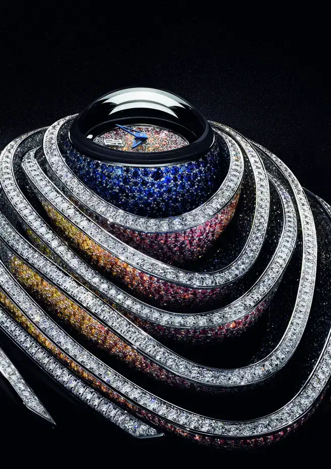 Arte y tecnologia, en donde las barreras entre uno y otro se han desdibujado tanto que es dificil saber si es una joya relojera o un reloj joya.