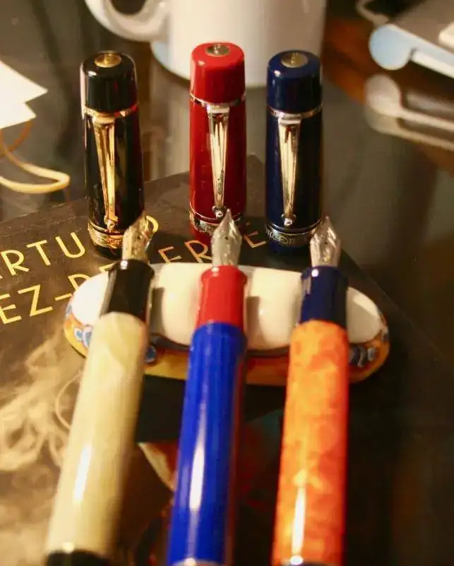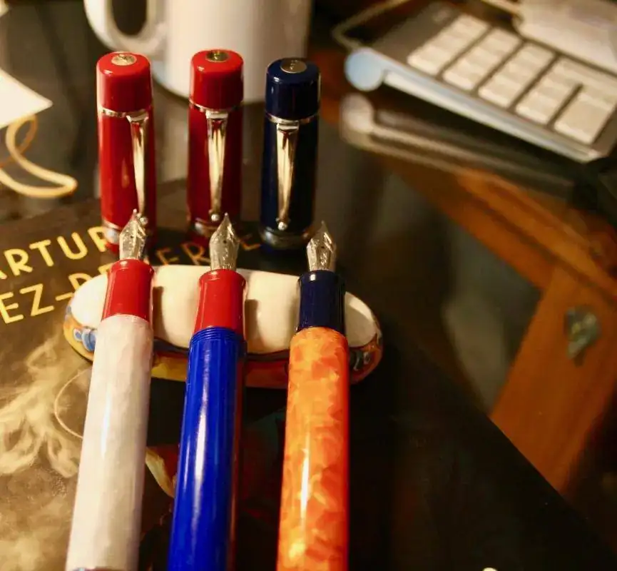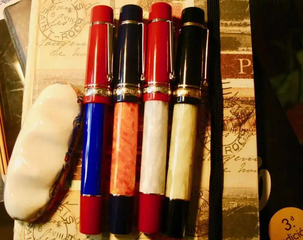 Unas fotos: el plumín M corresponde a las dos de capuchón rojo.