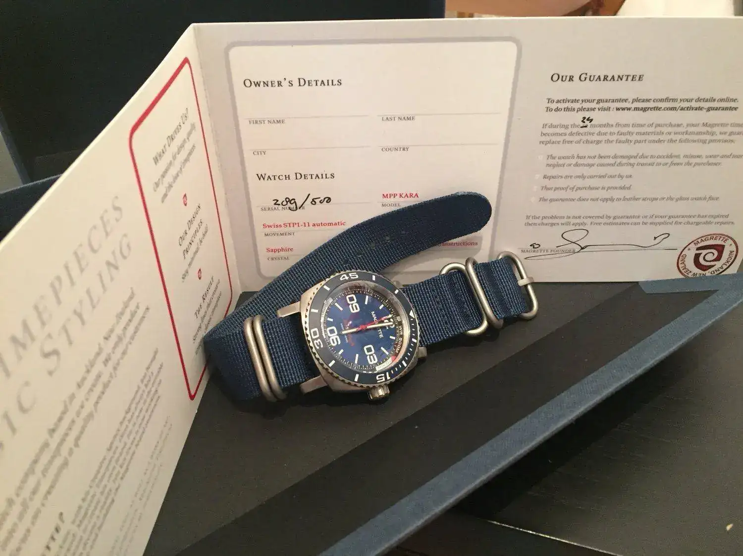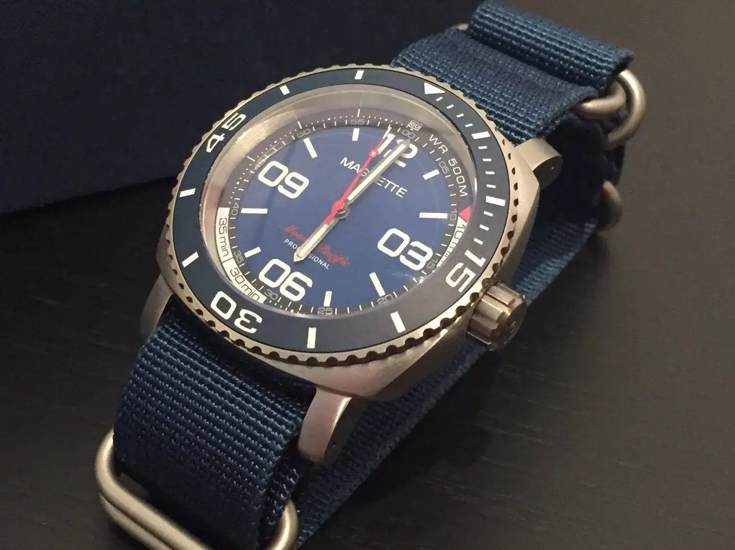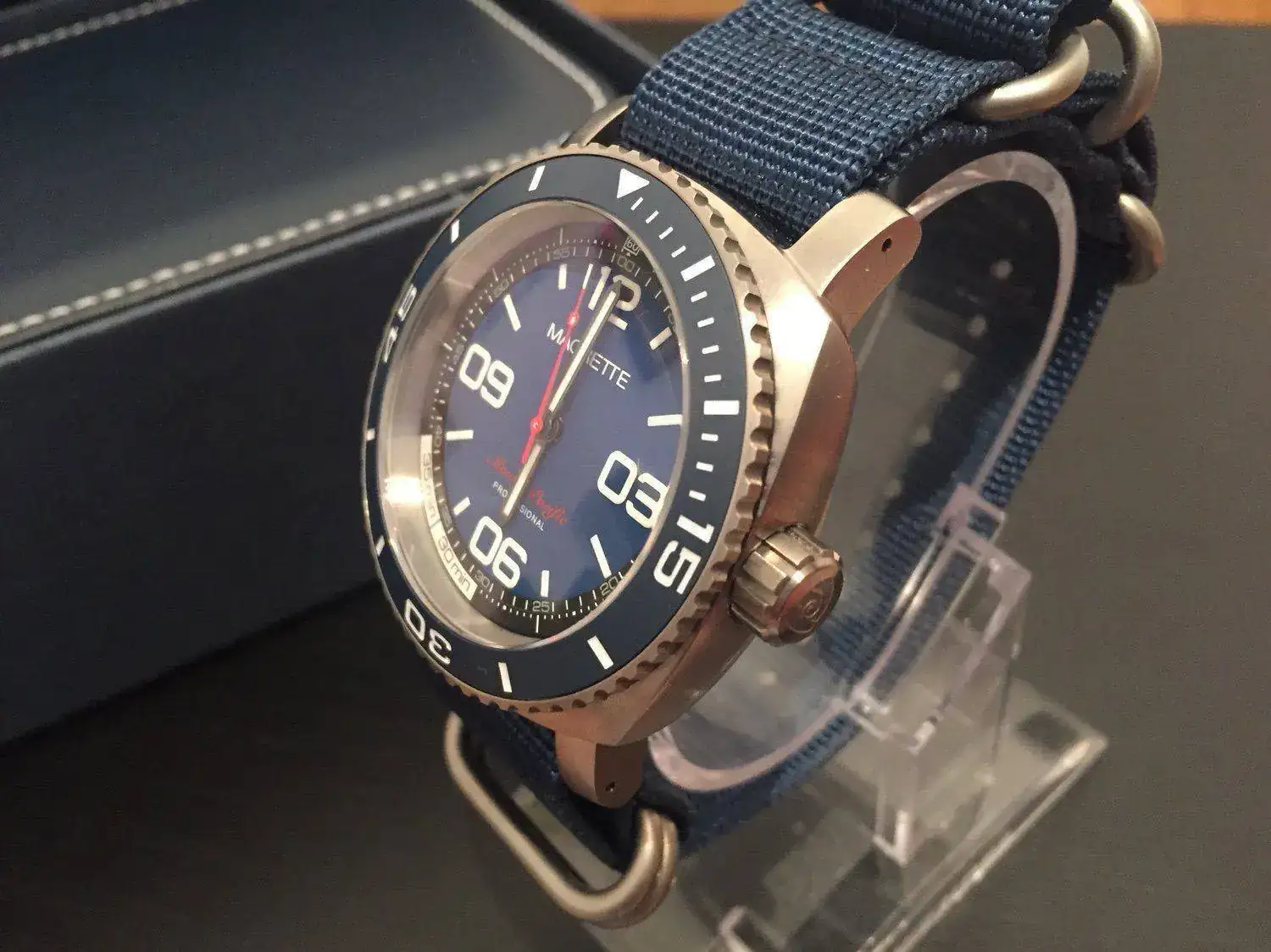 BRAZALETE. Caucho azul con deployante y Nato azul.