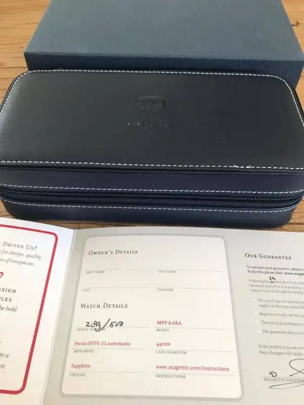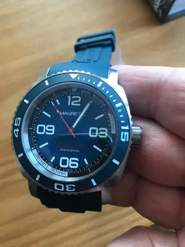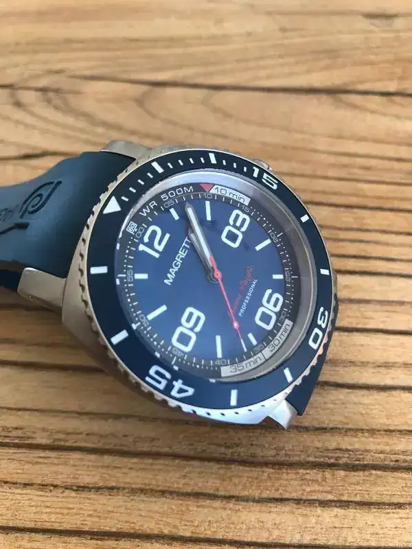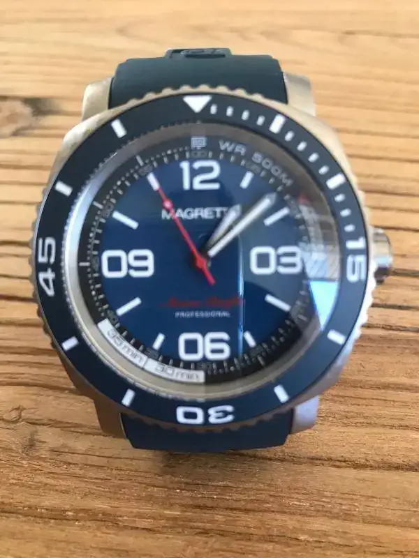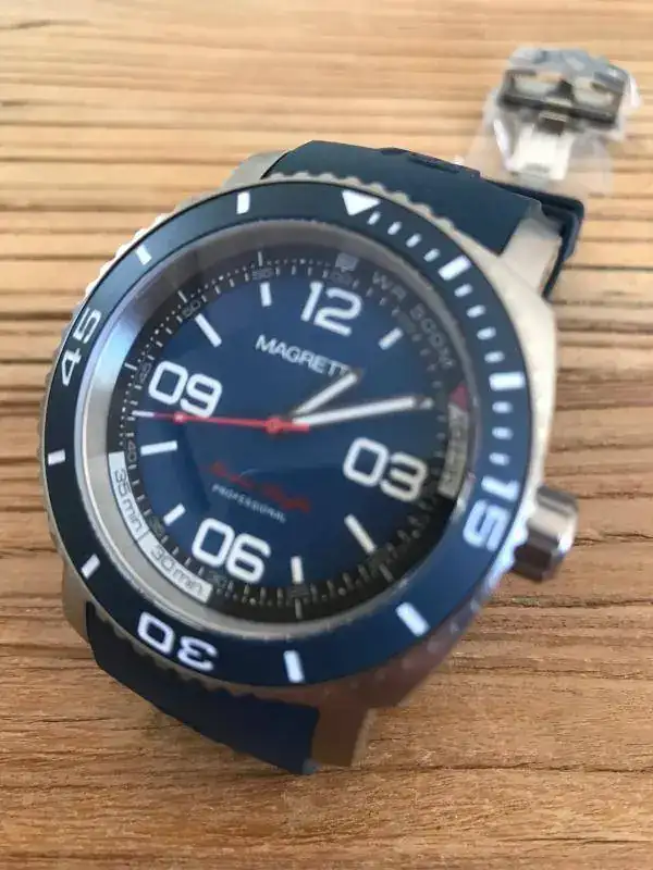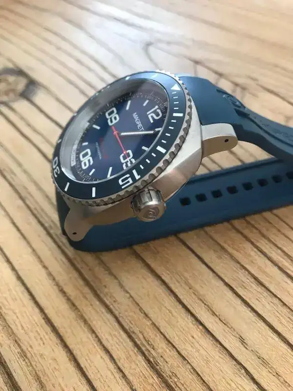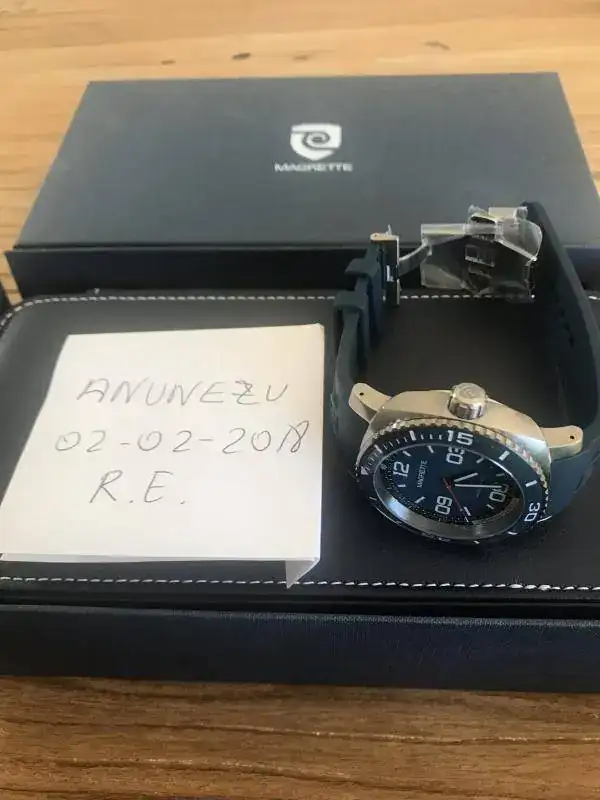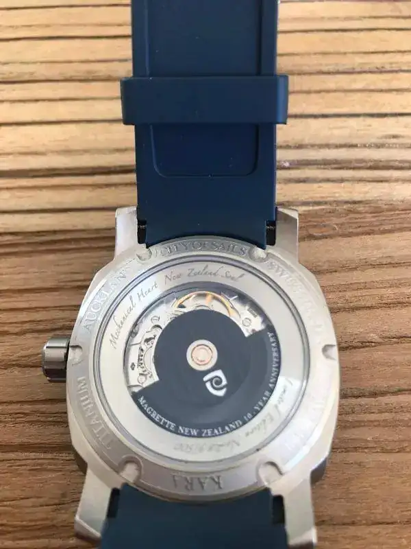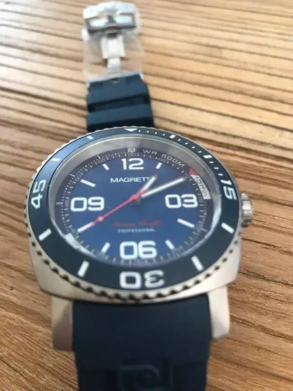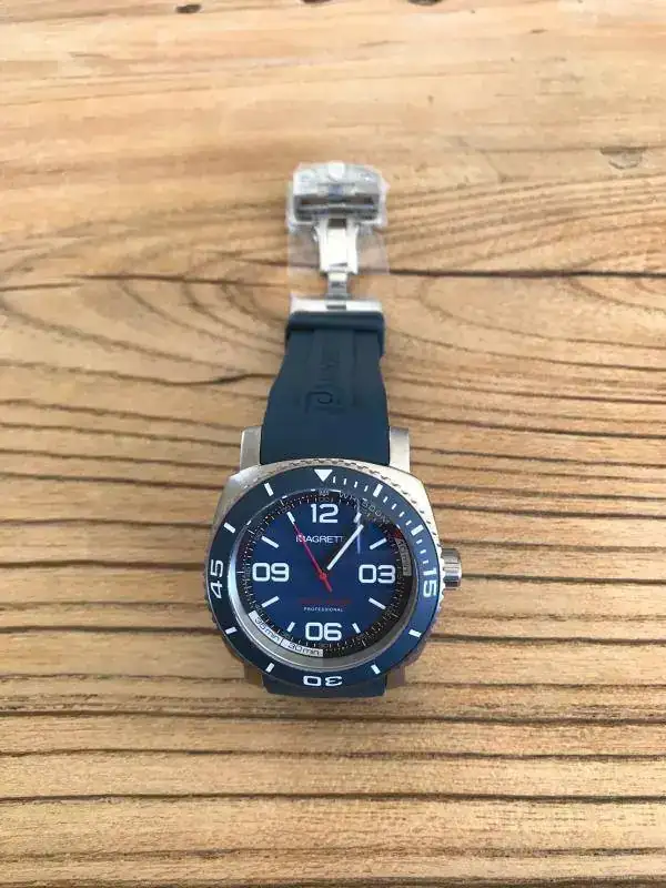 .No puedo decir que es nuevo a estrenar con plásticos porque le he hecho tres pequeñísimos arañazos en la parte interior de dos de las asas al probarle una nato,si no sería efectivamente nuevo a estrenar con plásticos porque el reloj ni se ha utilizado ni se le han quitado los plásticos.