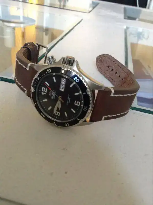 Solo esta pequeña presentación del archiconocido Orient Mako 1 que me llego hace unos dias y decir que tengo una muy grata impresion de este reloj , aun que no lo use ahora para lo que eata hecho le he puesto una correa sailcoach que a mi entender le queda bastante bien , me gusta en invierno este toque suave de la piel y no el armis , aun asi me he pedido una correa vintage marron que se la pondre cuando me llegue , y ahora unas fotos del individuo