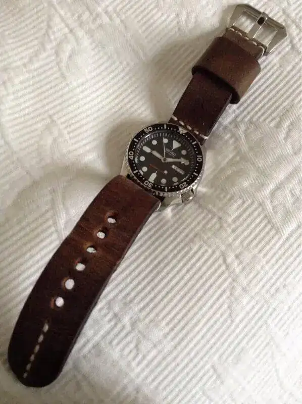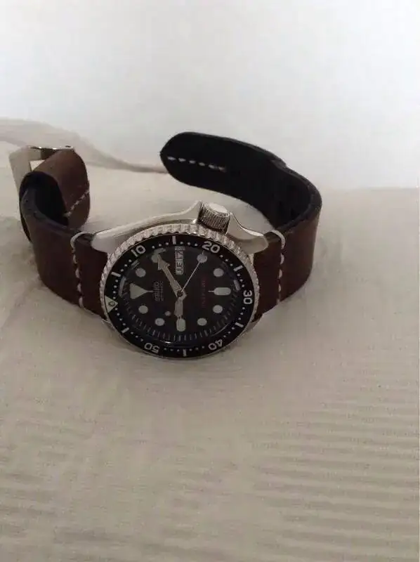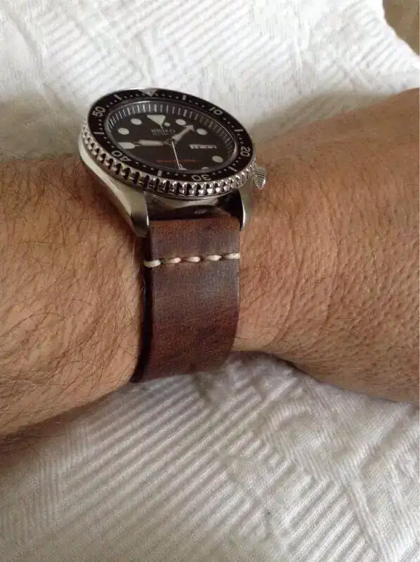 Le queda excelente; enhorabuena; la verdad que ese modelo de correa a mi me encanta!Vaya put... El robo del iphone , quizas puedas recuperarlo o por lo menos bloquearlo, mi compra fue positiva y me llego en unas semanas , claro que vino desde chile y tardo algo pero ya tengo estrenada con un seiko 007 , le saque unas fotos que pongo a continuacion y tambien estan en el post de divers a la americana junto a un monton de divers con correas de piel, para mi gusto queda muy bien y buena correa de piel ademas de suave en la muñeca