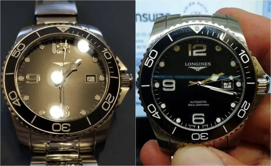 Teniendo las dos versiones de la historia la cuestión no es tan clara ni tajante como parecía al principio. Si nos fijamos en el triángulo de las 12, efectivamente se puede apreciar una ligera desviación. Objetivamente existe, ahora bien, en este punto se entiende mucho más la postura inicial de la primera dependienta que no vio nada raro. Y es que, no solo en fotografías, sino que nosotros mismos al mirar el bisel podemos vernos engañados si no lo hacemos en el ángulo correcto (me pasa muchas veces mirando en mis relojes el ajuste de las manecillas con los índices).