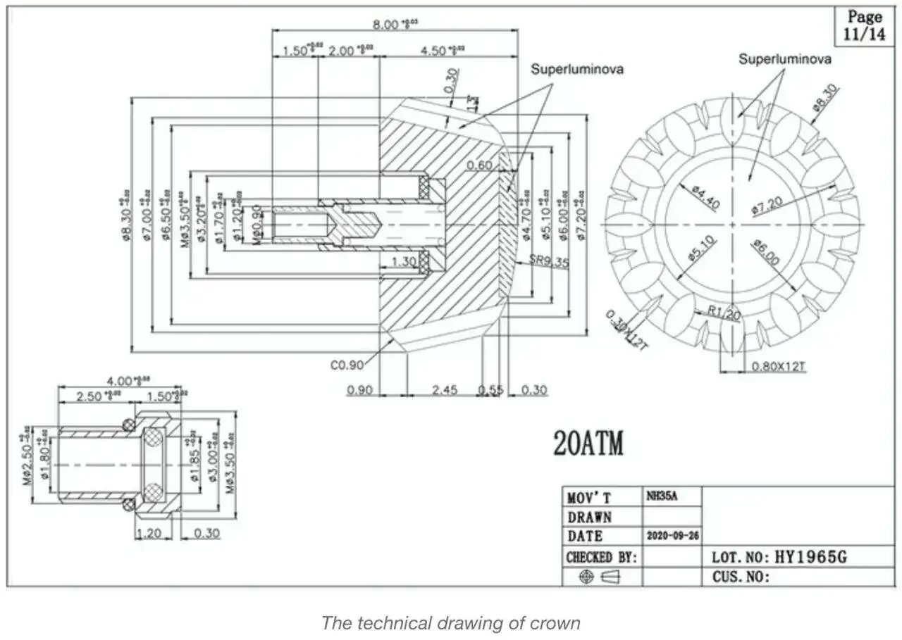 Algunos detalles de su construcción (la segunda imagen es el plano correspondiente solamente a la corona):