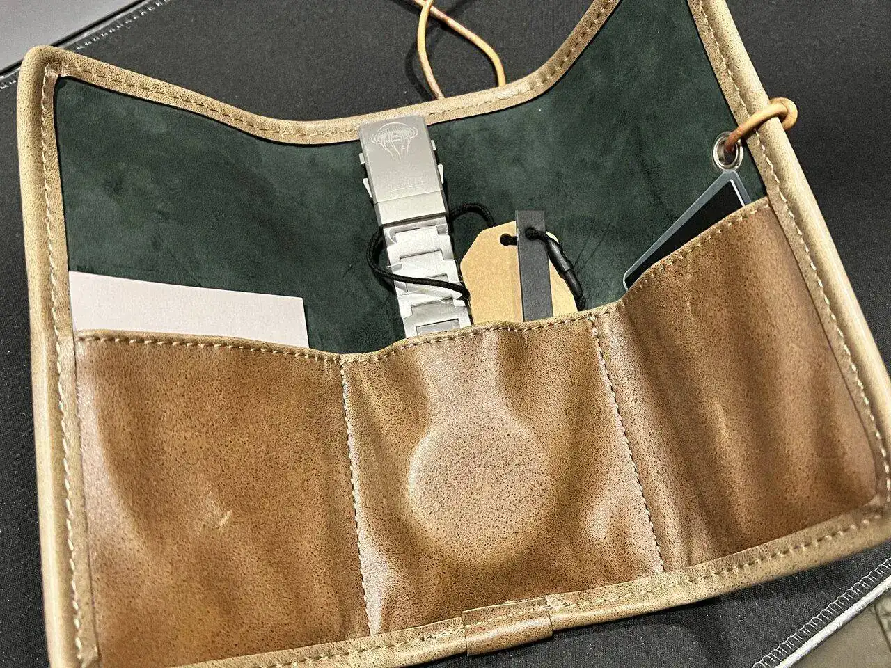 En su interior aparecen la funda del reloj y los dos objetos de la recompensa (una minilinterna UV y un instrumento para ajustar los brazaletes):