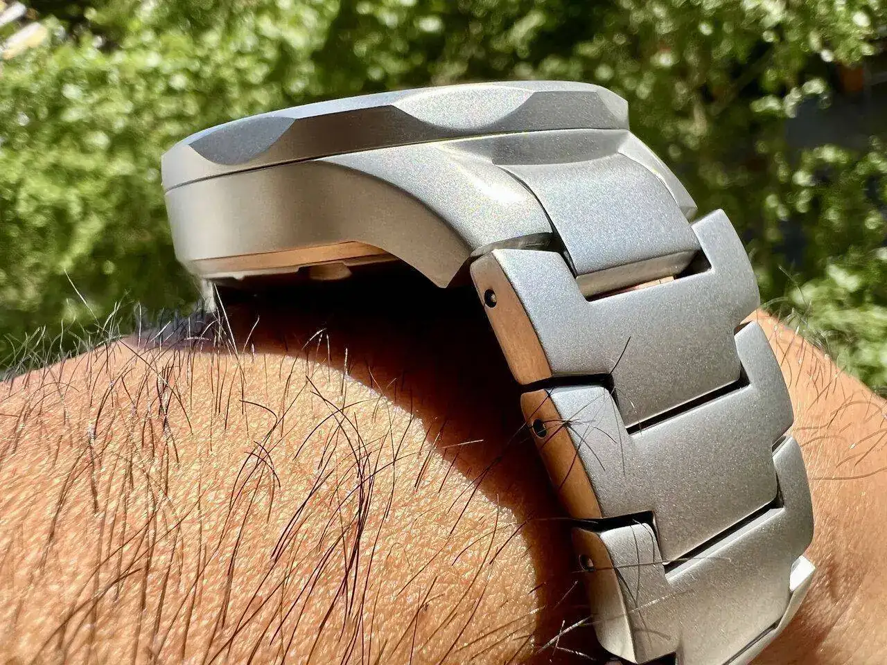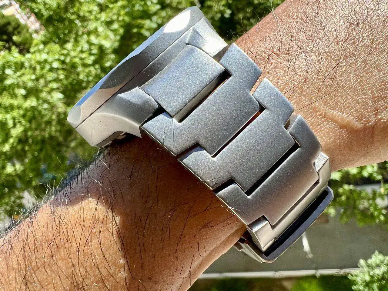 Ante tanto de bueno, un pequeño punto a mejorar, al menos para mi muñeca. Al tenerla plana y con el hueso pronunciado, el primer eslabón de la parte superior queda muy separado y crea una imagen poco estética, aunque en el extremo inferior queda perfecto. Nada grave, pero a tener en cuenta: