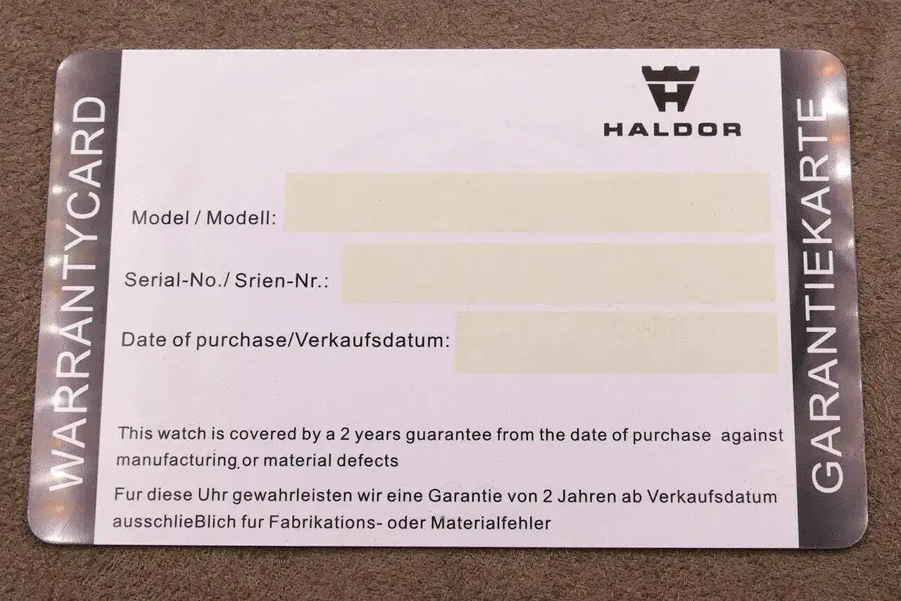 También encontramos la documentación del reloj, que se limita a una tarjeta tipo bancaria y que, al ser de la reserva personal de su creador, me llegó sin cumplimentar:
