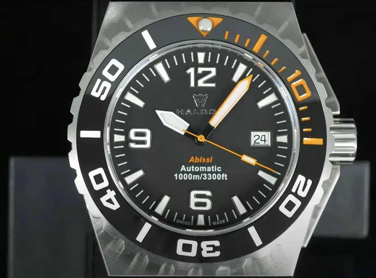 Lo primero era buscar un nombre para la marca. Uno que transmitiera fuerza, virilidad, gloria… Ya está!!! HALDOR ¿Que cual es su significado? Pues es el nombre de la piedra de Thor, o sea, toda una declaración de intenciones. Y como nombre del modelo, un toque más exótico: Abissi, que significa "abismos" en italiano. Por lo tanto, para rendir honores a semejante nombre, sería todo un 1000 metros.