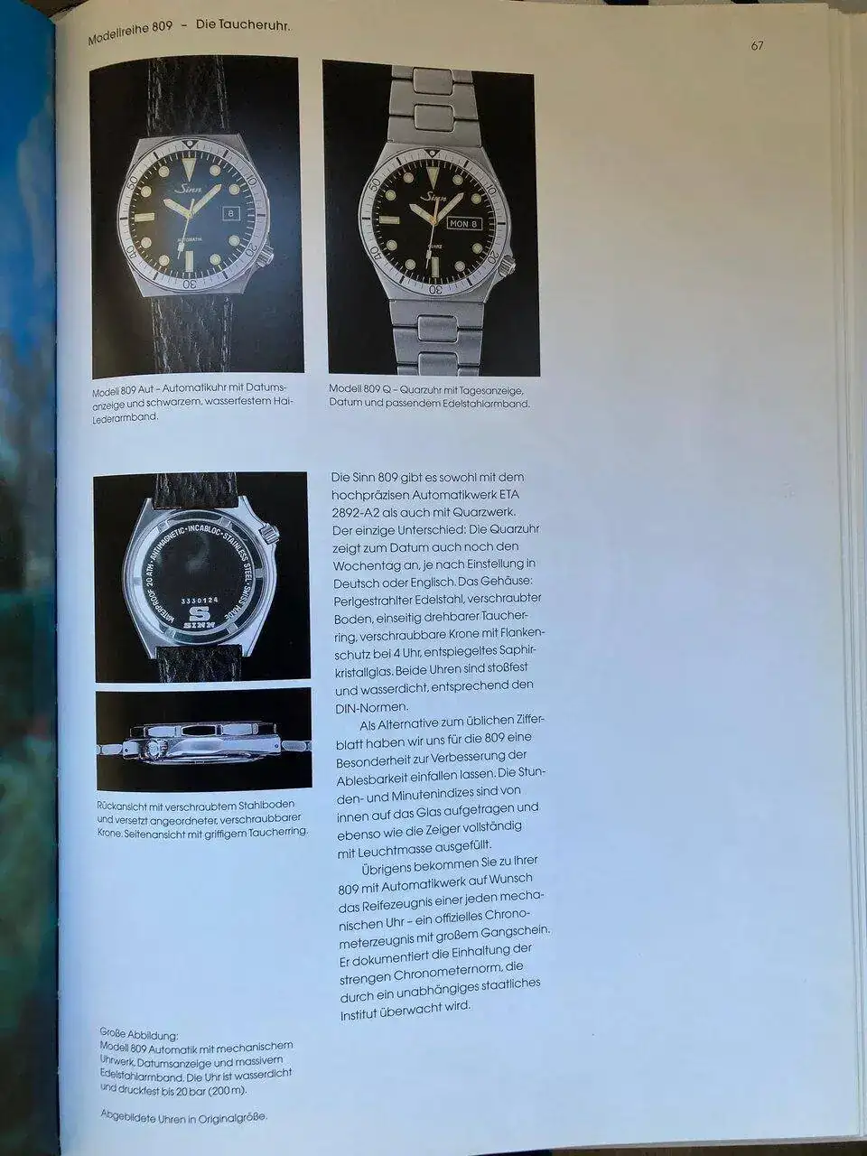 Menos mal que gracias al gran bibliotecario y conservacionista horológico que es nuestro gran líder Antón (@Goldoff ), aquí podemos disfrutar de un documento gráfico excepcional, imágenes extraídas del catálogo "Der Jubiläumskatalog" de Sinn que contiene toda la información relativa al modelo 809: