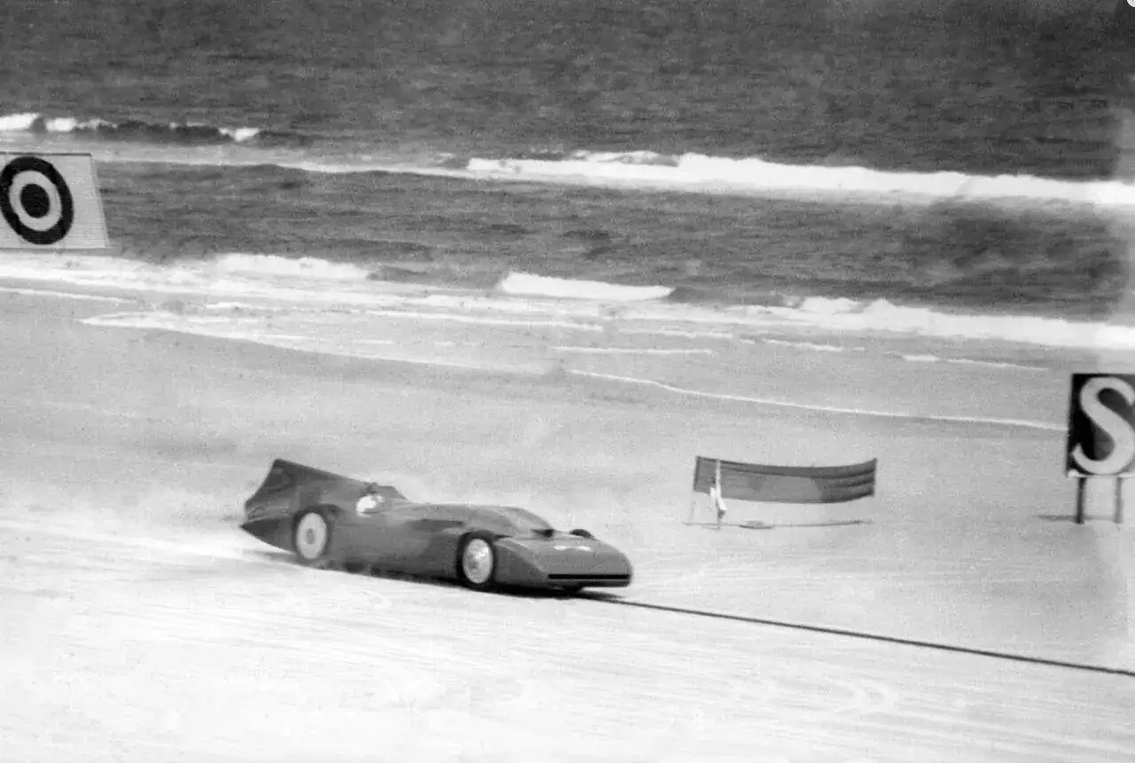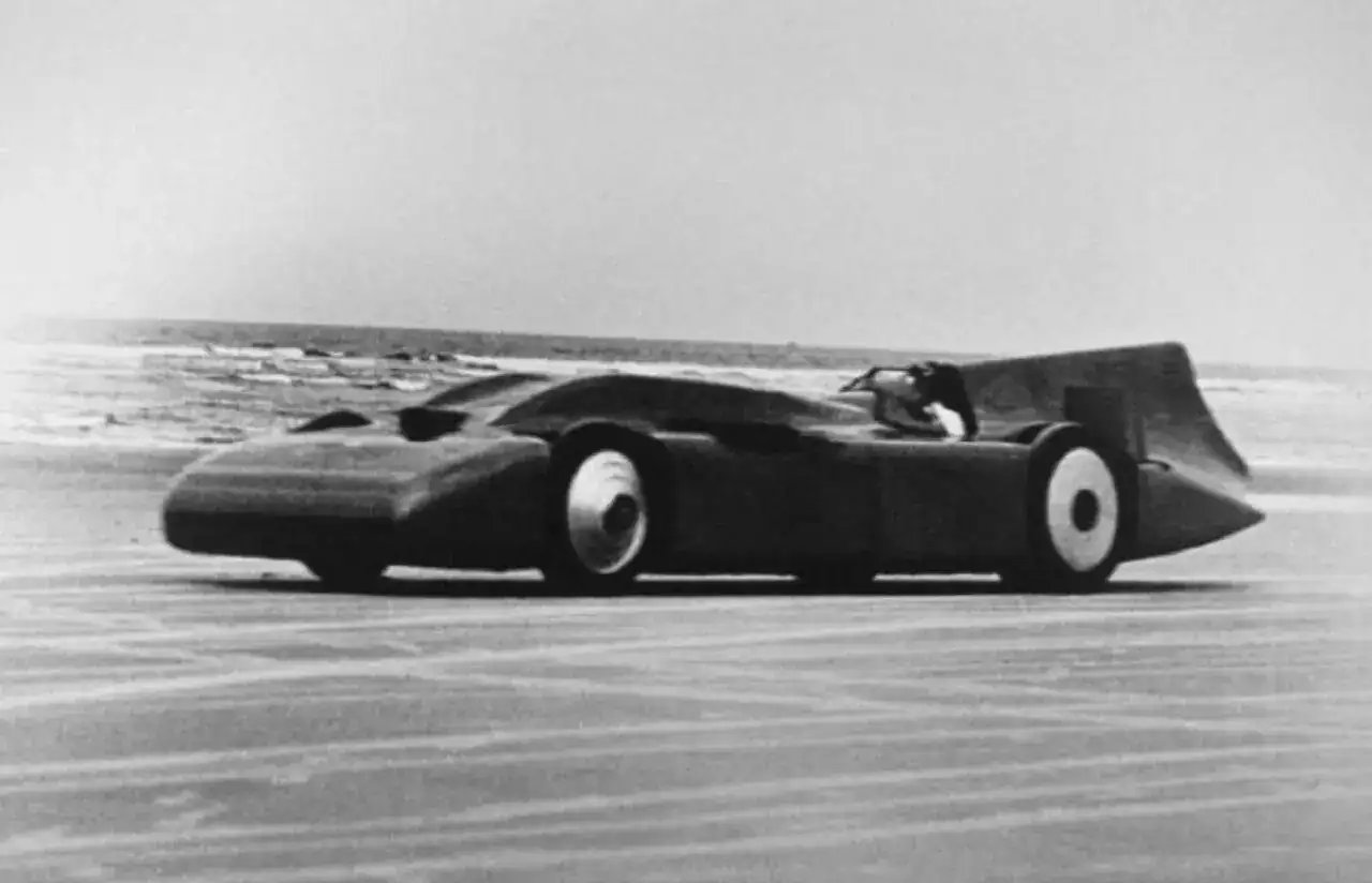 Logró esta gesta con su Blue Bird V, una evolución de sus anteriores modelos, el cual medía 10 metros de longitud y pesaba 5 toneladas. El corazón de la bestia era un motor Rolls-Royce de aviación, un V-12 de 36,5 litros de cilindrada que entregaba la friolera de 2.300CV, una barbaridad para su época. La distancia entre ejes era más corta en un lado del coche que en el otro para compensar el tremendo par del motor y el carburador era casi tan grande como un motor Volkswagen completo: