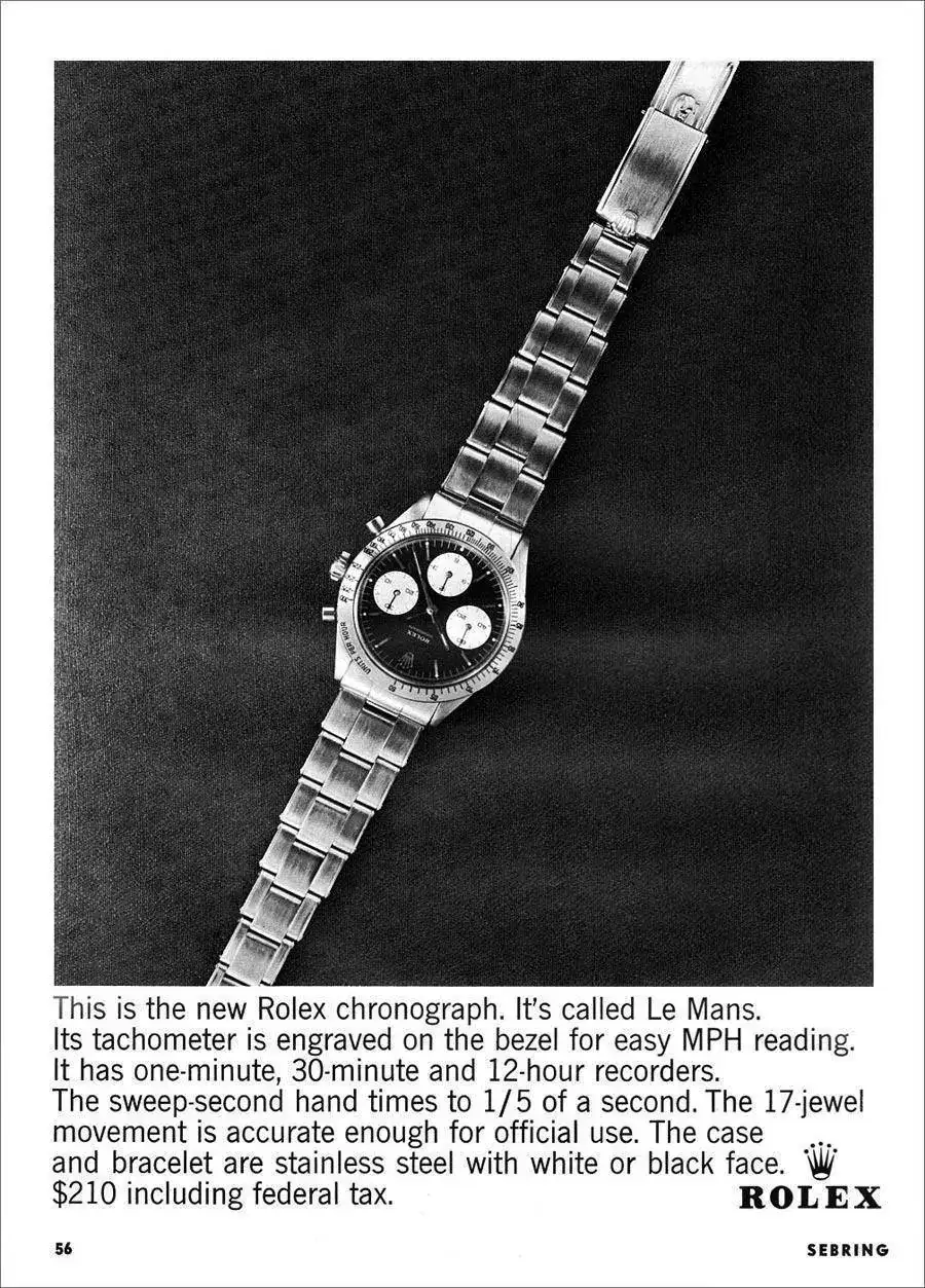 Hay otra curiosidad que desconocen muchos aficionados a la relojería. En sus inicios, el Rolex Cosmograph era denominado por la propia marca como... LE MANS!!! Aunque esa "fiebre" duró poco, con el tiempo Rolex también se convertiría en el sponsor de las 24 Horas de Le Mans... ¡ay, esas serendipias!: