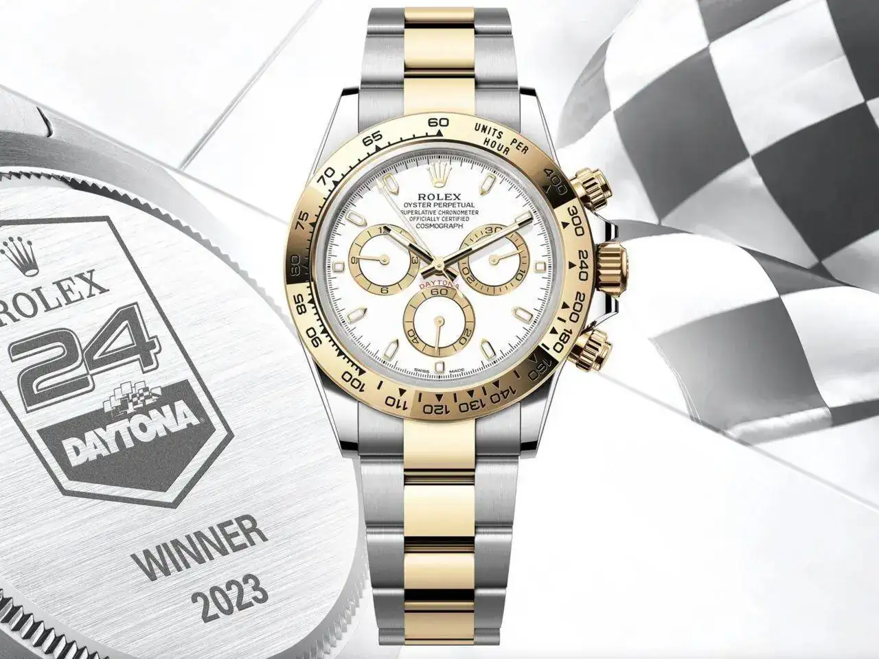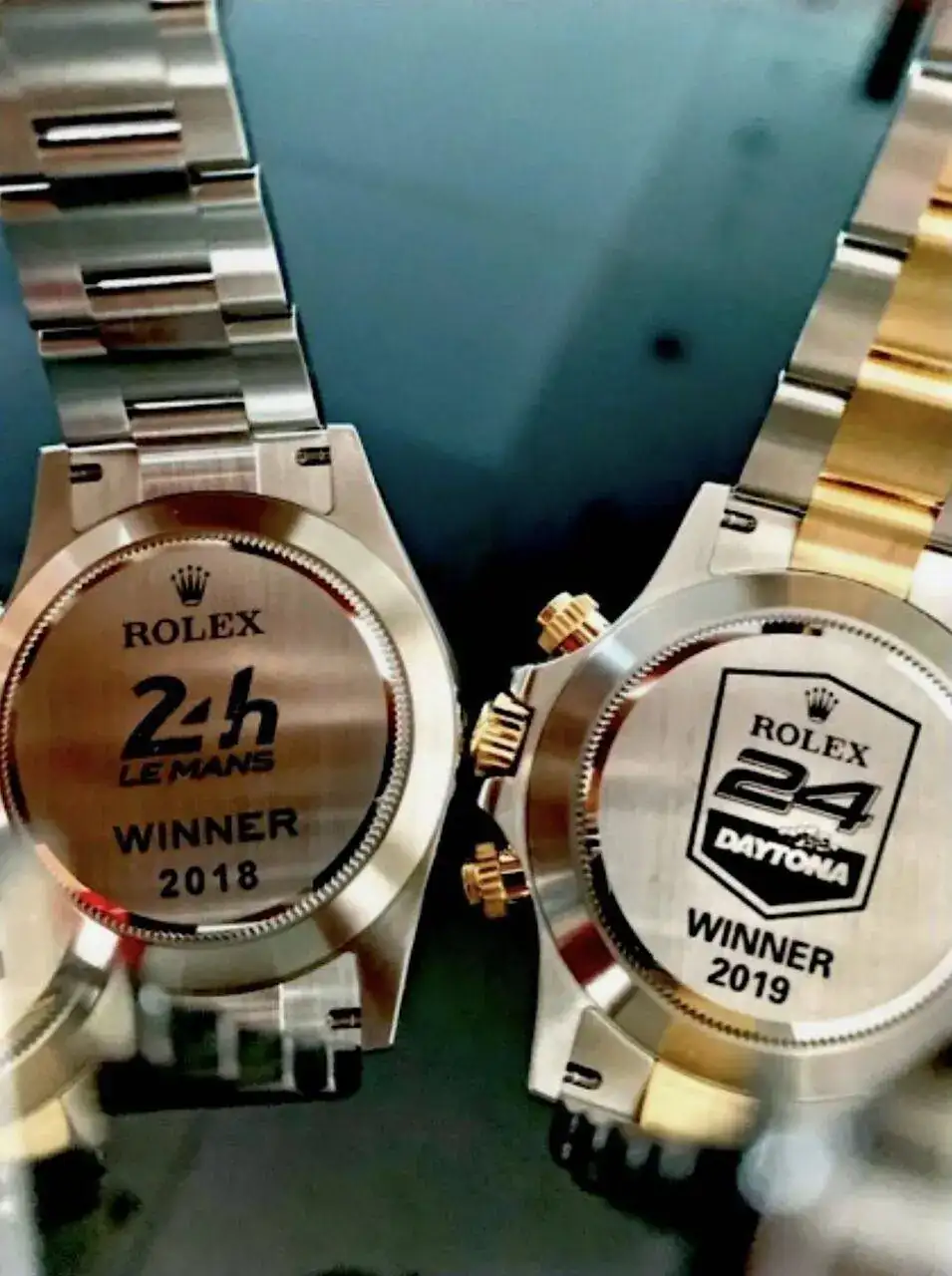Durante los últimos años el Daytona que se entrega a los ganadores es el modelo mixto de acero y oro, y la caja es especial para estas celebraciones del podium: