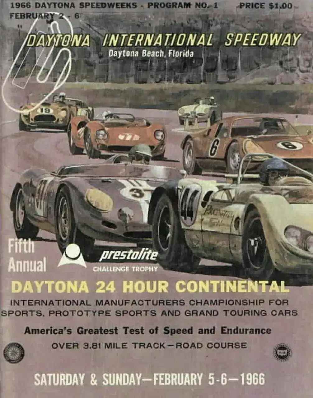 Pero las carreras de resistencia "a la europea" también iniciaron su anadadura en Daytona el 5 de abril de 1959, con la prueba de los 1.000 Kilómetros, puntuable para el Mundial de Sport Prototipos, que se adjudicaron la dupla argentina Roberto Mieres y Pedro von Dory al volante de un Porsche 718 RSK: