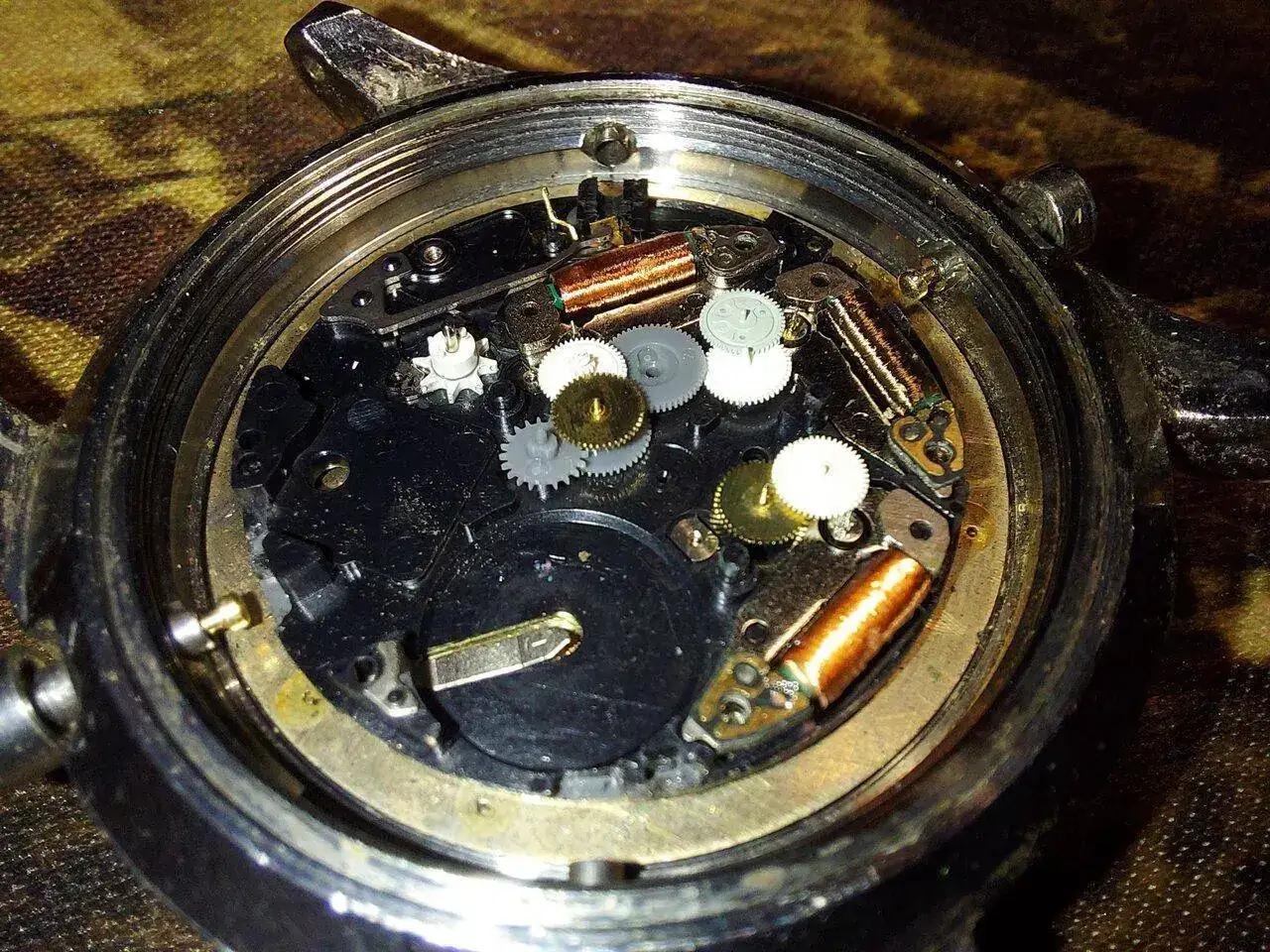 Llevo un mes intentando arreglarlo, lo habré montado y desmontado 10-15 veces, ya conozco mejor el mecanismo del reloj que mi casa (no tengo ni idea de relojes, soy un chaval que se ha puesto a empaparse viendo vídeos y leyendo). Ya he conseguido que la manecilla de los modos (mode) funcione y también que la manecilla de los segundos se mueva, pero va a "trompicones" y acaba atascándose. Pero la de los minutos y horas no se mueven absolutamente nada. Se que no están fuera de su sitio porque moviendo directamente el engranaje principal se mueven. Si alguien sabe que le puede pasar intentaré hacerlo.