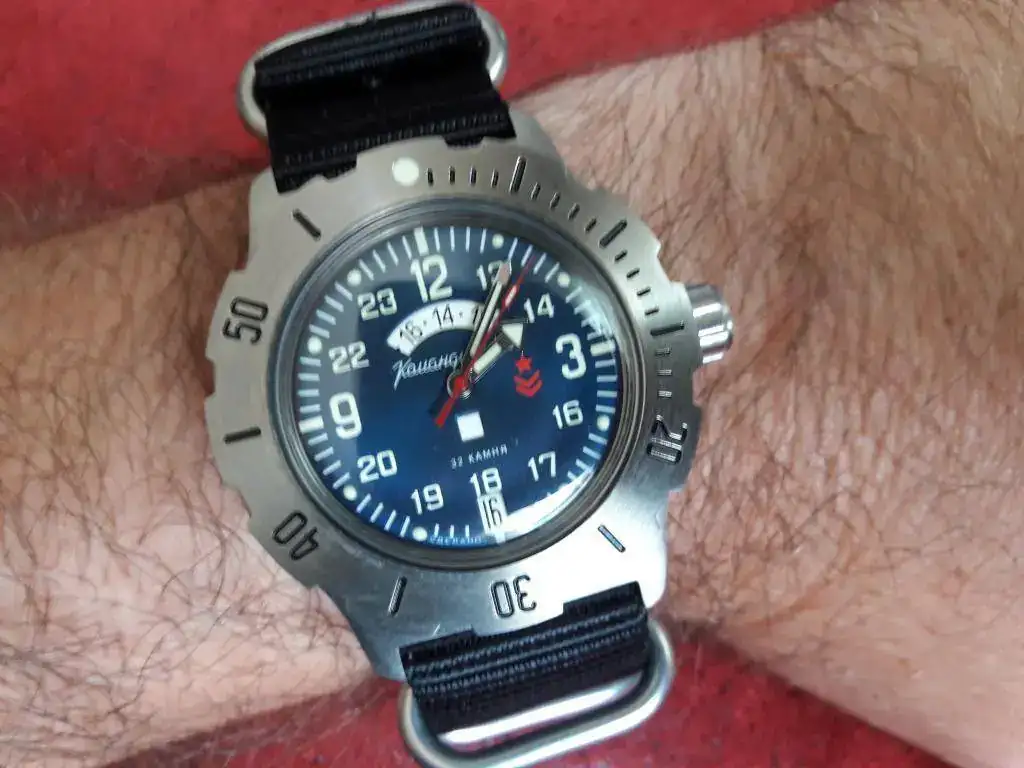 Parece grande por no llevar bisel y tener la esfera amplia, pero es corto de asas por lo que no sobresale de la muñeca.