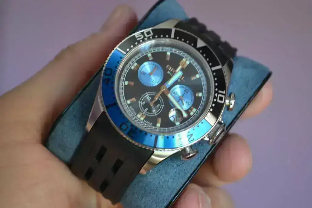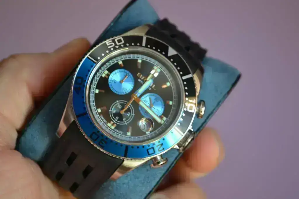 Es un reloj muy bien hecho y su estado es muy, muy bueno. Casi perfecto, excepto por algún pequeño detalle en las zonas pulidas (que los tienes que buscar) y una pequeña señal en el bisel (en el minuto 12).