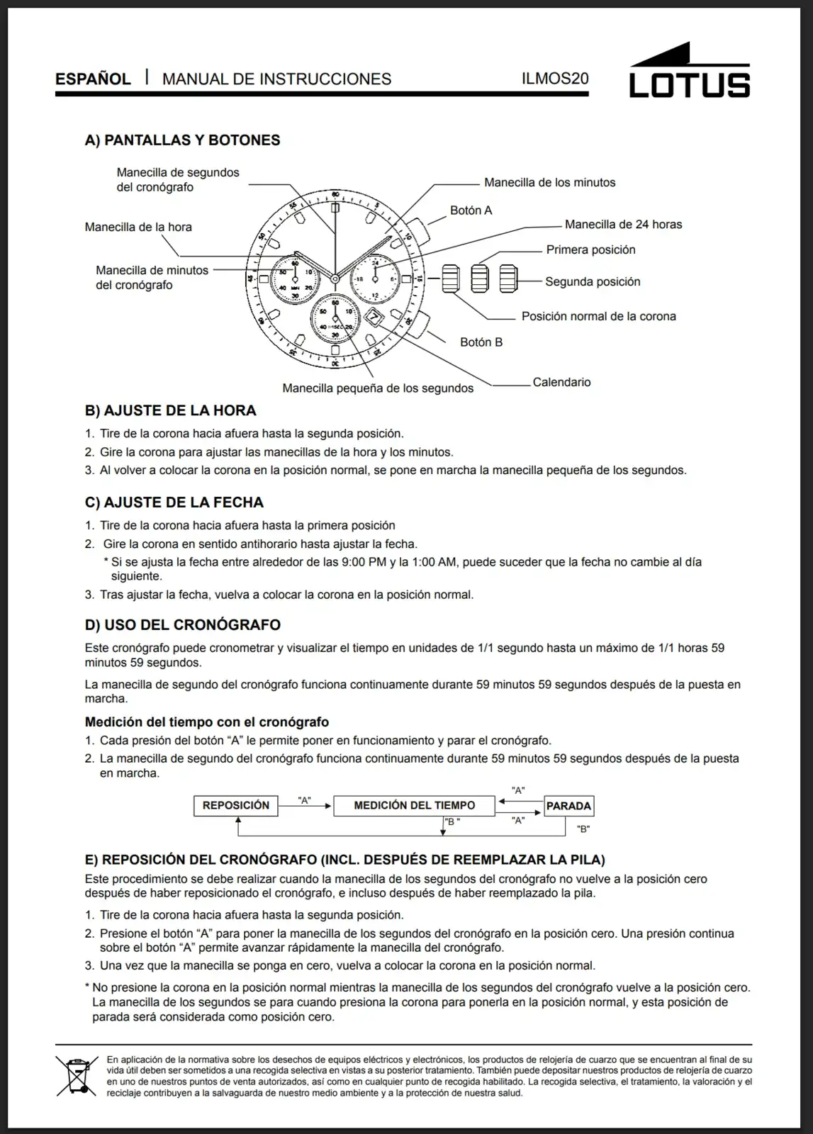 Muy buenas, el caso es que tengo este Lotus que le puse pilas empezó a funcionar el segundero pero no tengo ni idea de cómo ponerlo en hora, he mirado por internet y no encuentro ningún manual, por si alguien tiene alguno parecido y pudiera orientarme de su funcionamiento, el número de modelo es 9563, gracias