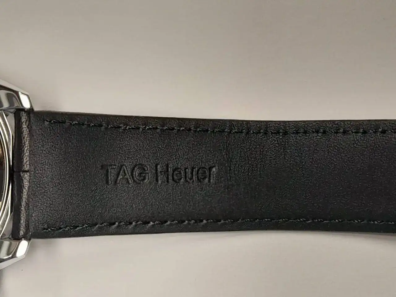 Correa de piel negra con cierre desplegable de acero por pulsadores.