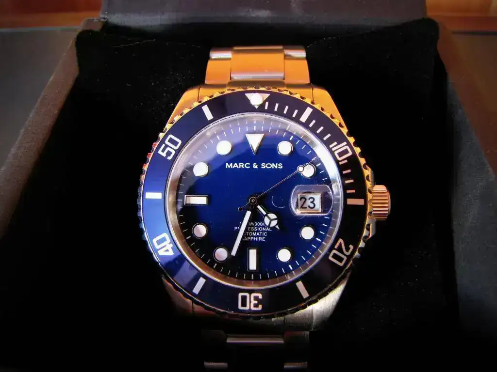 Saco a la venta este precioso homenaje al Submariner realizado por Marc&Sons. Lleva un Miyota 8215 automático que, por lo que he comprobado en la única puesta que le he hecho, va ajustadísimo.