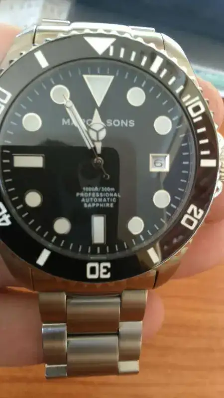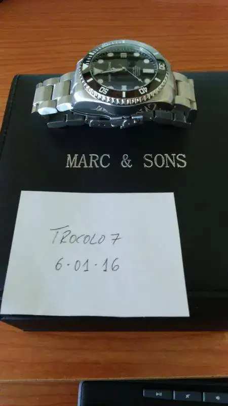 Buenos días y feliz día de Reyes a todos! Pongo en venta mi Marc & Sons en perfecto estado, salvo que en una de las garras tiene un minúsculo "picotazo" que he intentado sacar en la foto, pero se nota más al tacto que a la vista y aunque no tiene importancia, ahí está. Por lo demás está flamante; armis impoluto, bisel cerámico y cristal de zafiro igualmente intacto. Es muy cómo de llevar y el armis es una auténtica delicia.. eslabones macizos y bien terminado. Trae su caja, eslabones sobrantes y garantía en