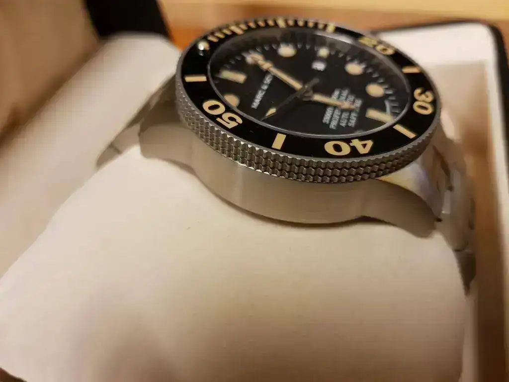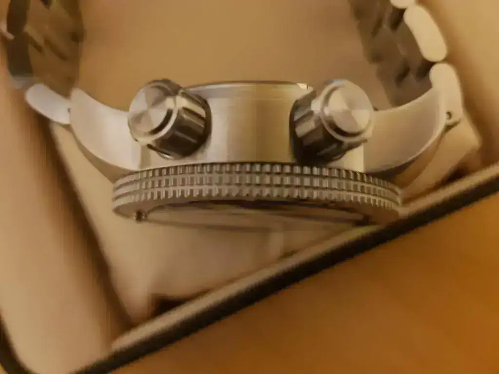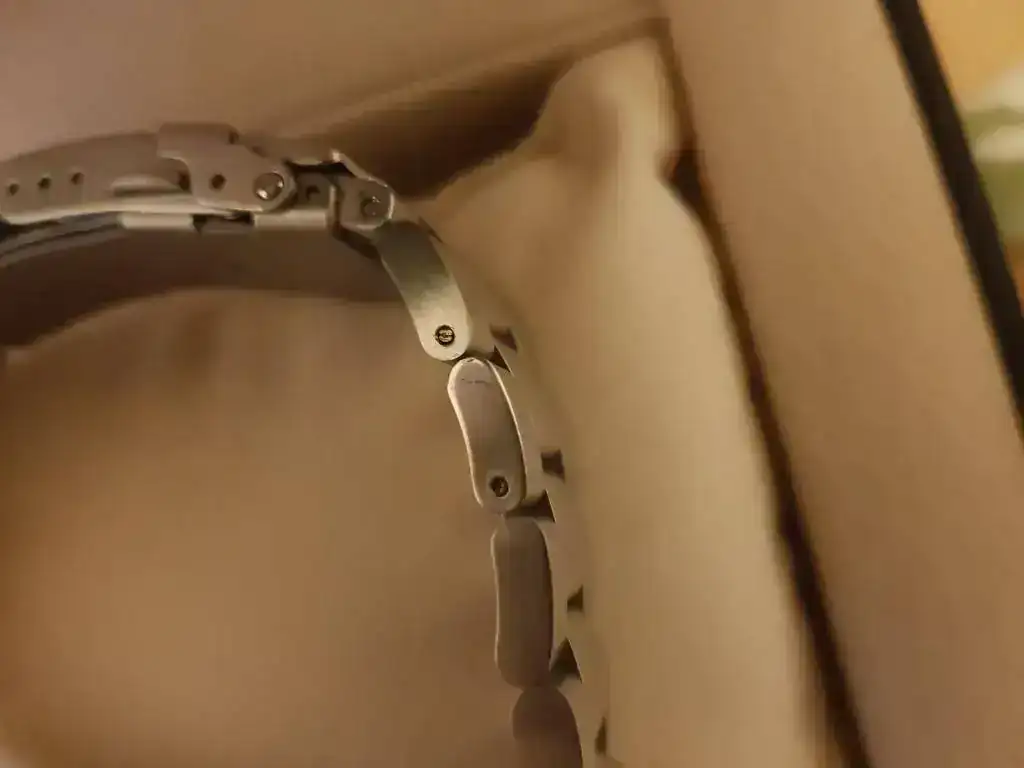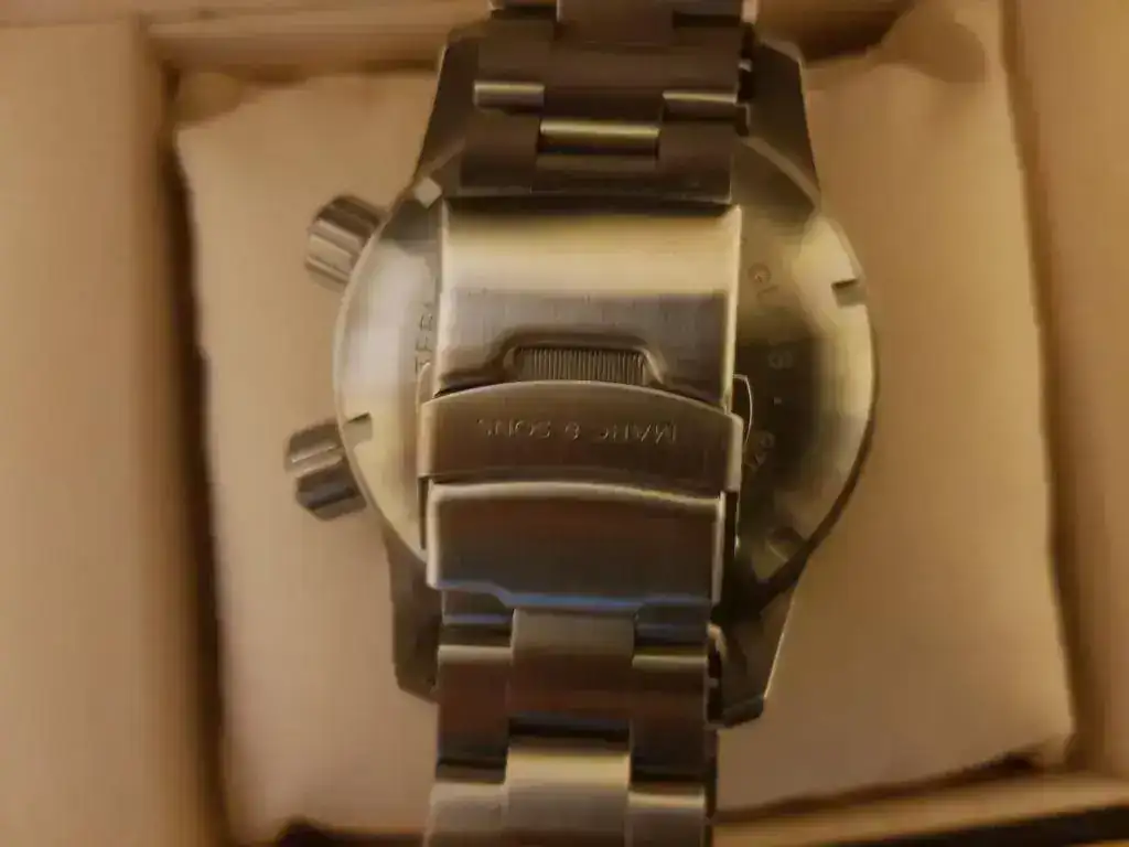Decir que el reloj tiene dos puestas de dos horas y lo único reseñable es una pequeña raya en un eslabon del armis que intento reflejar en una de las fotografías, por lo demás, impoluto