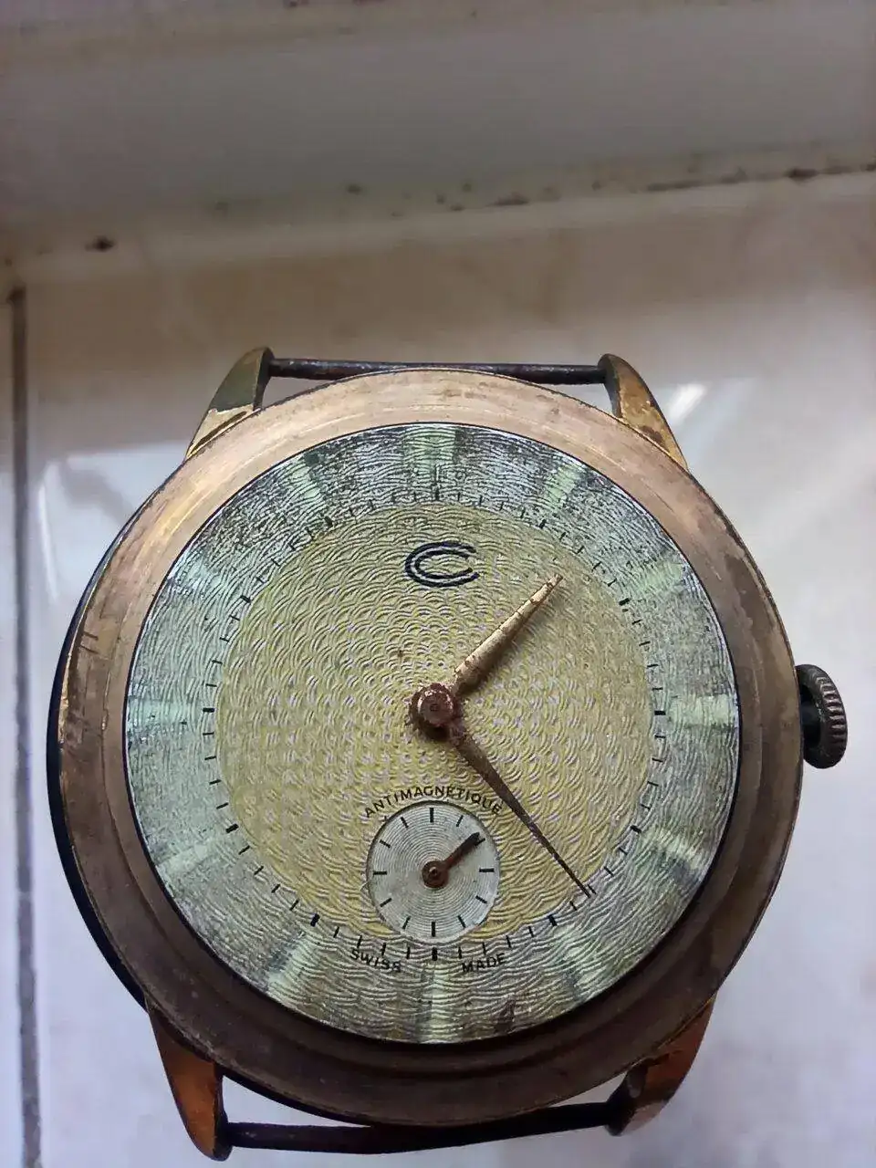 Yo creo que la esfera aun estando en muy mal estado es repintada, por lo que esas 2 C concentricas hasta pueden ser las iniciales de nombre y apellido de quien lo ha repintado. A mi personalmente no me suena de nada , pero .... igual estoy equivocado y es alguna marca que desconozco.