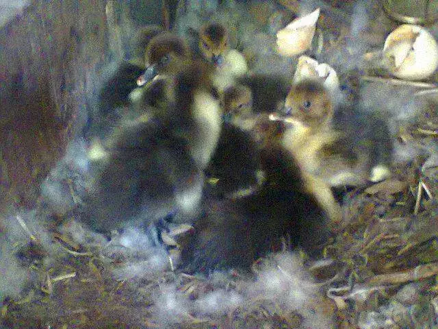 La semana pasada recibí una llamada de mi ex pareja avisándome que Margarita y Sebastián, los patos criollos que viven en la casa fueron papás. Papás primerizos, por otra parte. margarita armó muchas veces nido en los últimos años... pero nada. Recién ayer pude sacar unas malísimas fotos de los pequeños y la orgullosa mamá: