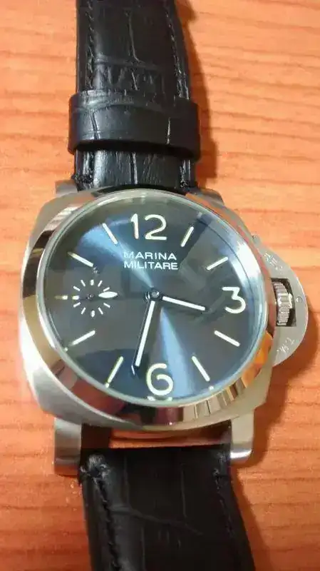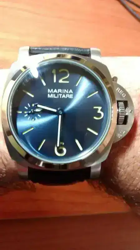 Vendo este Marina Militare estilo Pam 1950, con dial azul precioso, como podréis apreciar en las fotos. A la luz del sol hace un efecto fantástico. El reloj lo he recibido hace menos de una semana y me lo he puesto nada más que una vez, porque son 44 mm y mi muñeca es para llevar 40 o 41 como máximo. Así que está nuevecito. Nada que decir en cuanto al estado, como podréis imaginar. Su calibre es un Asian Unitas 6497 manual y en cuanto a la exactitud, he observado que es muy puntual el muchacho :D. Comprado en Parnis, ha tardado un mes en llegar a mí!!!... así que si os fastidia esperar tanto, teméis que se pierda por el camino.. y queréis reestrenar un reloj muy muy bonito y elegante, aquí tenéis al candidato perfecto. Le pongo un precio de 85 euros, envío incluido.