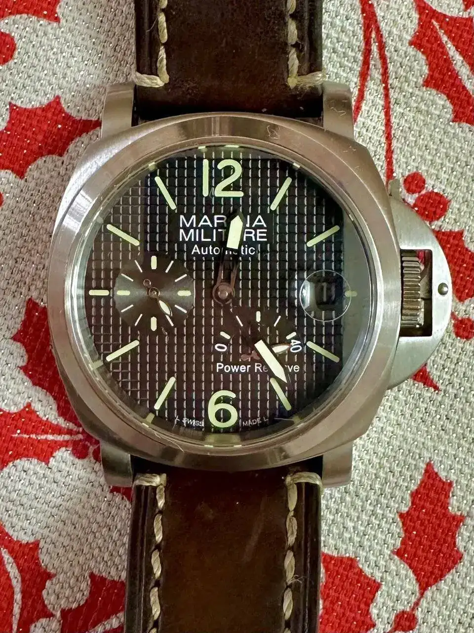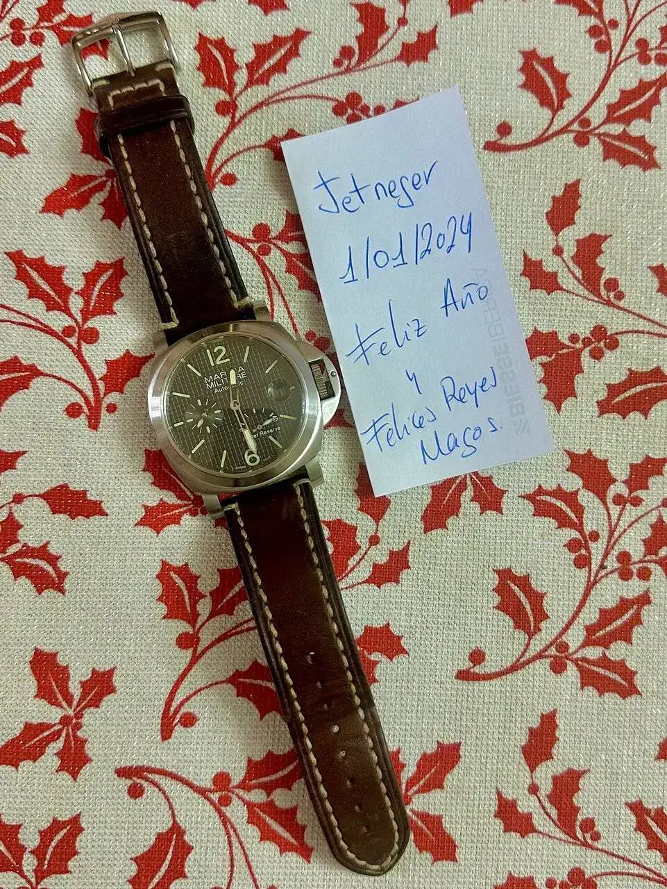 habiendo tomado la firme decisión de no acaparar y de vender lo que no voy a usar, saco a la venta este magnifico Marina Militare del mítico Gong. Es un reloj que no engaña a nadie, tiene una fuerte inspiración en un reloj que fue, es y será altamente codiciado. Pero te permite tener sensaciones muy similares a un costo de correa artesana del homenajeado. En su día muchos de nosotros lo compramos para valorar la compra de un Pam.