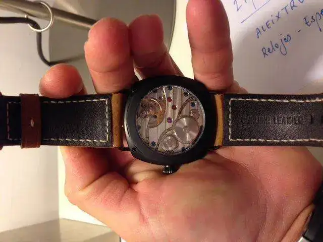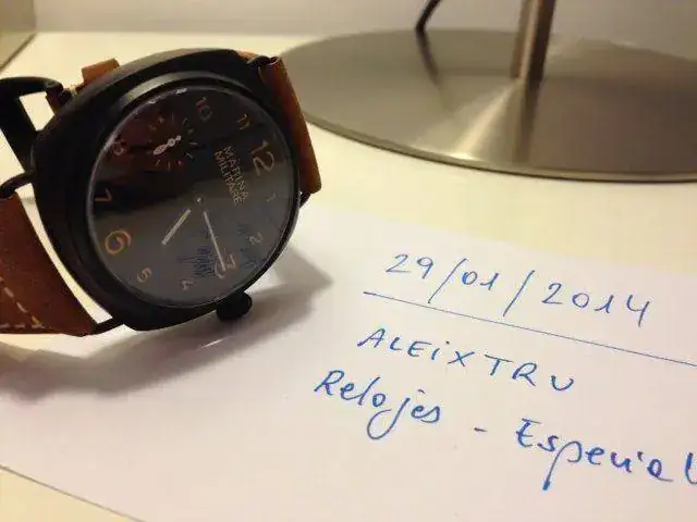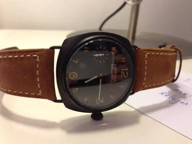 Se trata de un Marina Militare de 45mm, negrito, con la combinación vintage que tanto se está usando en muchas marcas. Tiene movimiento de cuerda manual y tiene una marcha muy buena.
