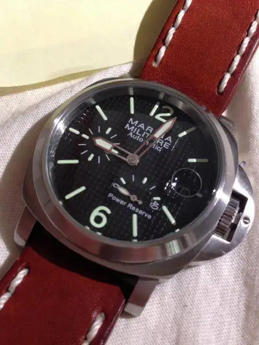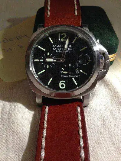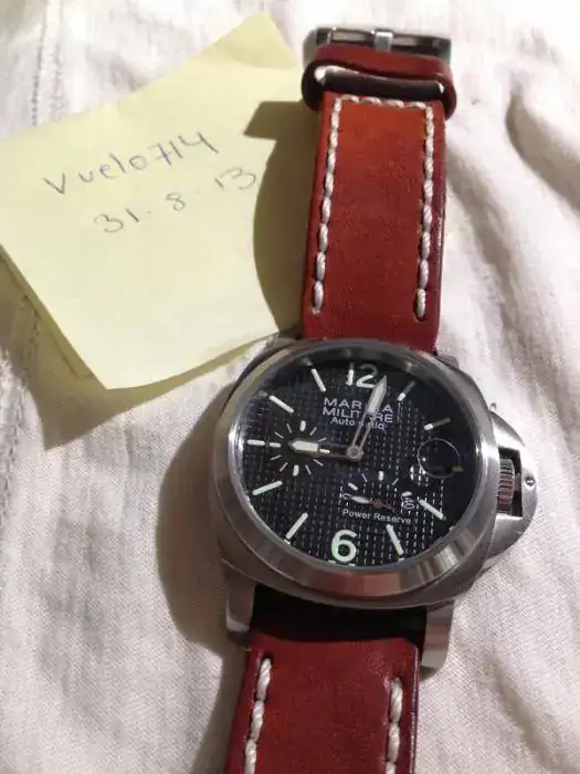 MM por todos conocido, no tiene ninguna marca a considerar, la correa esta perfecta a un 95% le queda mucha guerra, la cual casi vale mas que el propio reloj, cambio de fecha a las 8 , reserva de carga, automático que va perfecto.