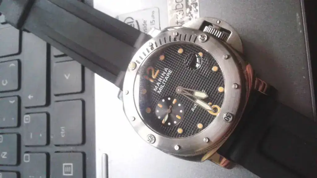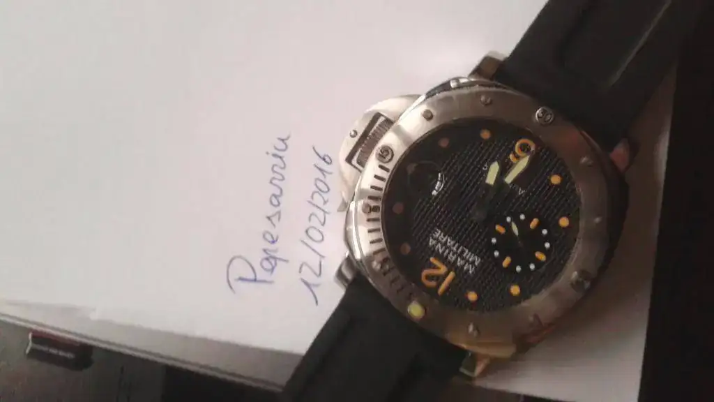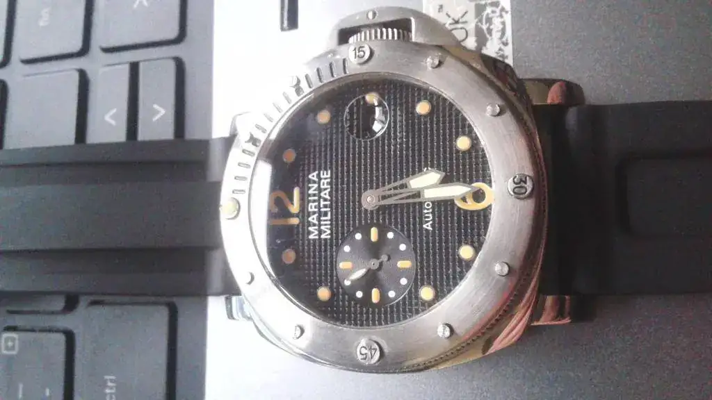 ) pero no tiene clicks.Únicamente me interesa cambiarlo por un Marina tipo 111, por lo que incluso se podría hacer caja por caja, y cada uno se queda sus correas, eso no me importa. (yo sólo tengo la de caucho que veis en las fotos). Lo preferiría de esfera oscura.