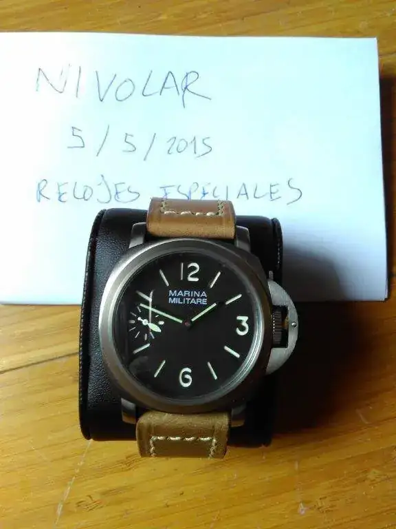 Pues sentia curiosidad como me sentaria un Panerai y me lo pedi, lo hice sobre pedido expresamente de titanio y con una correa de piel decente, no recuerdo si encargue zafiro o no, por tanto digamos que lleva mineral...apenas tiene 2 horas de una puesta y por lo tanto sin marcas ni nada, re-estreno, funciona perfectamente...