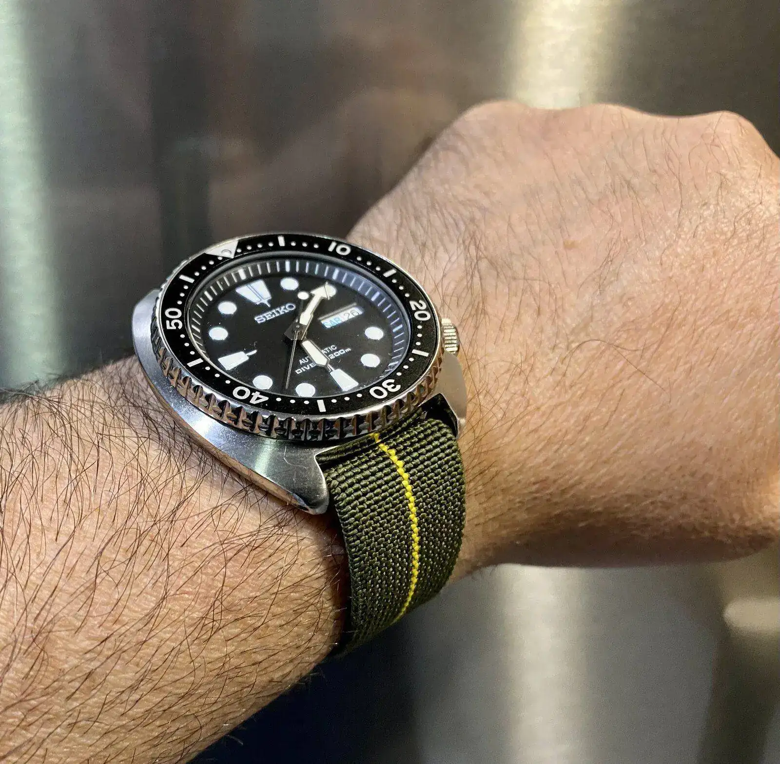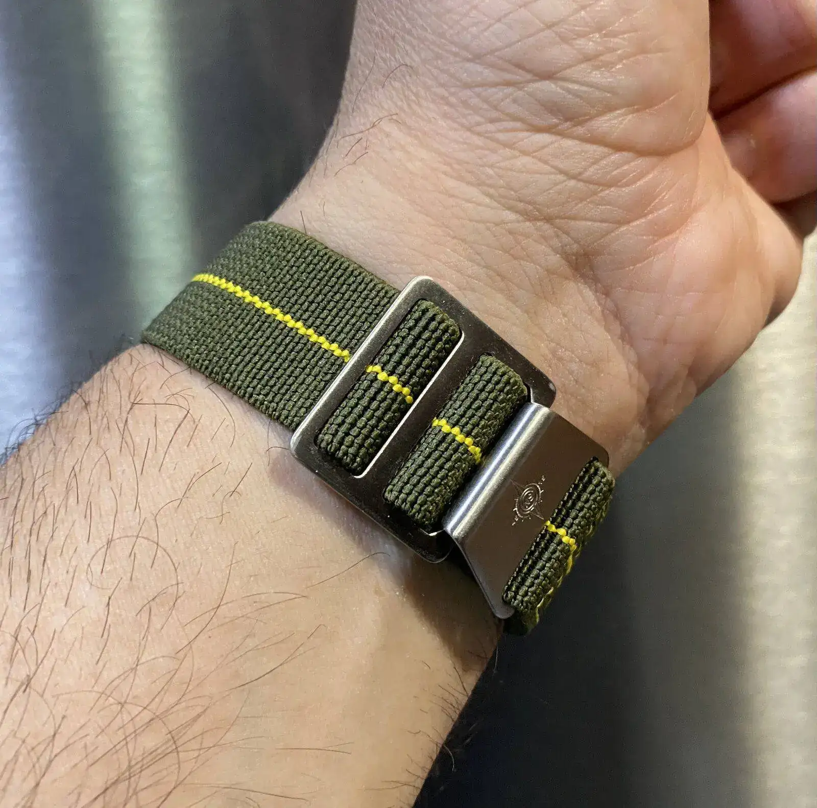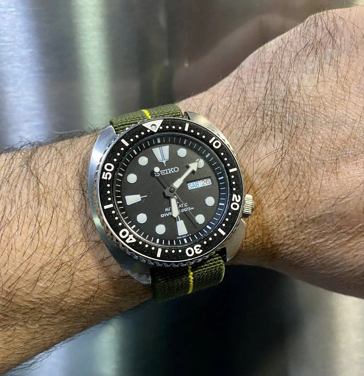 No le queda nada mal, pero ese reloj me gusta más con caucho.