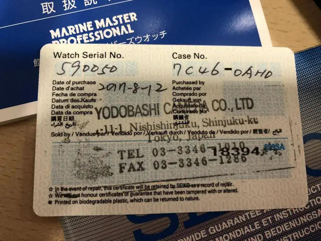 El reloj fue comprado en Japón el 12 de Agosto del año pasado.