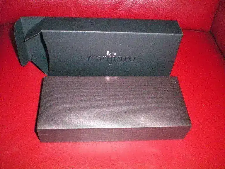 Después de quitar con unos nervios infantiles el papel de regalo, me encontré esta cajita, pensando en una funda de piel para mis estilográficas, o algún otro artículo en piel, propio de la marca...