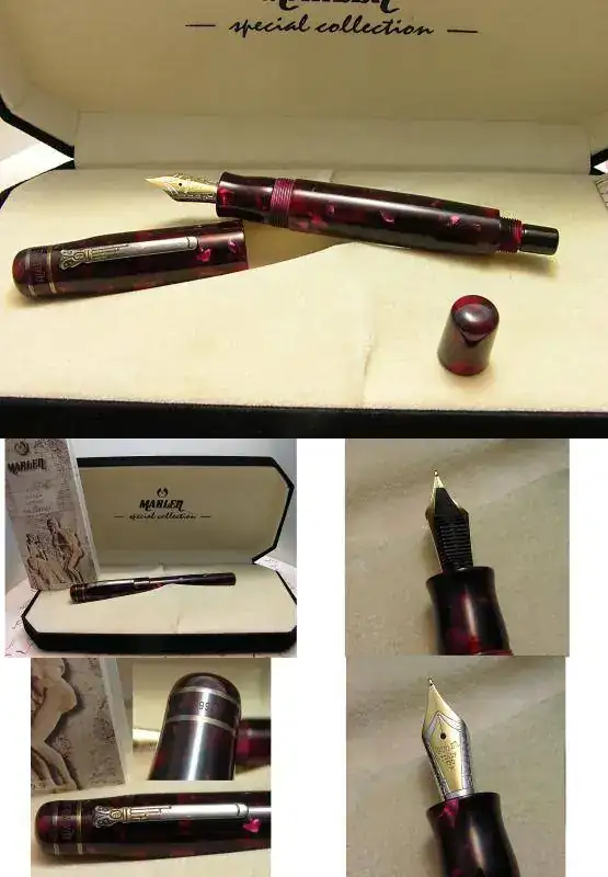 Ofrezco para su venta esta estilográfica MARLEN ULYSSES Special Edition 1999 en color rojo marmoleado y acabados en plata 925.