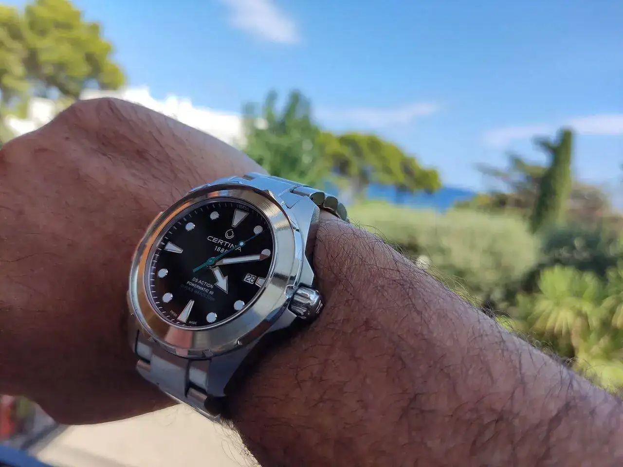 No tengo foto, pero me pasó igual con mi Tag Aquaracer. Hay que ver lo desangelados que quedan.Me ha hecho recordar cuando perdí el bisel de mi Certina dándome un baño en la playa...