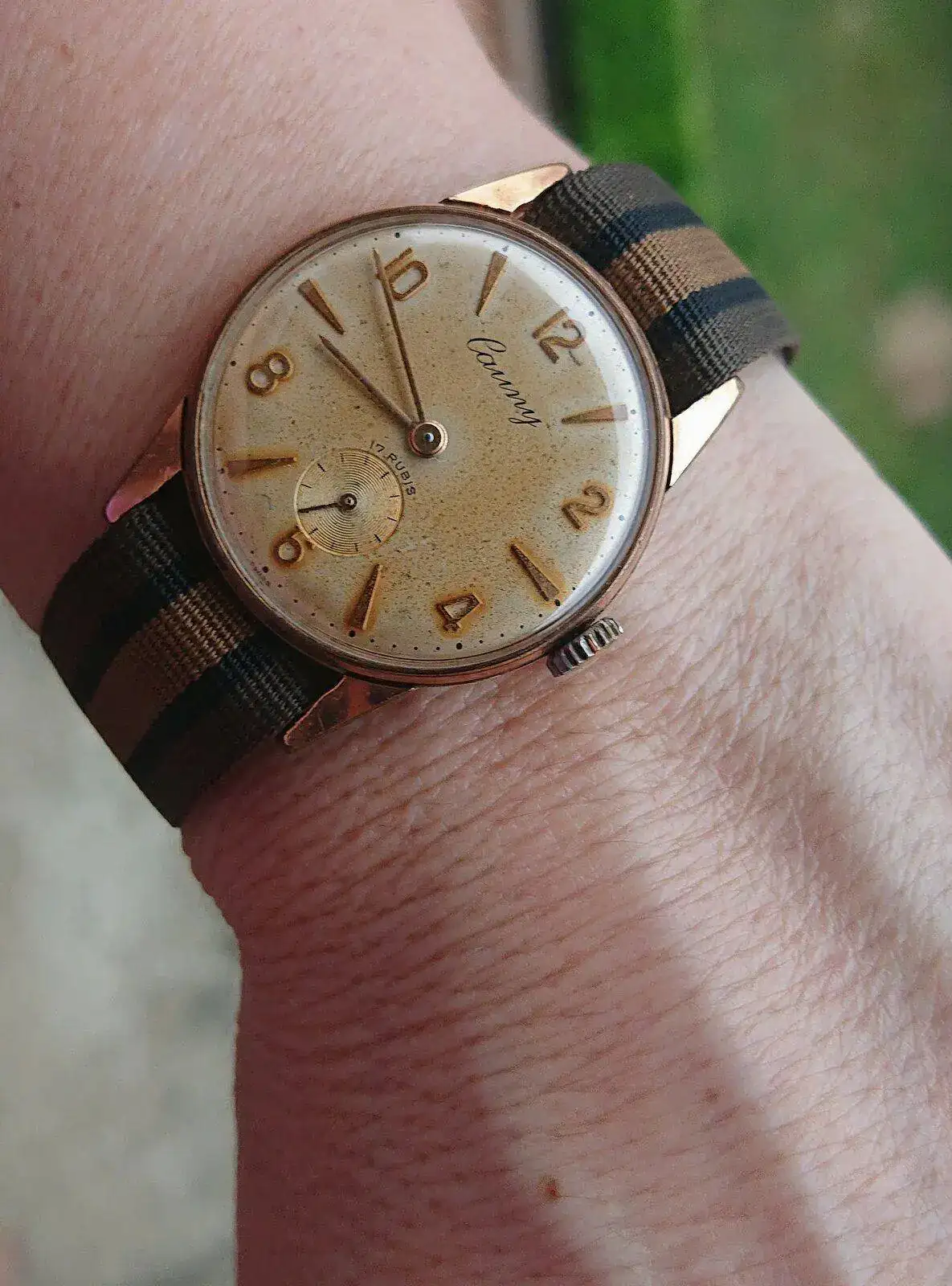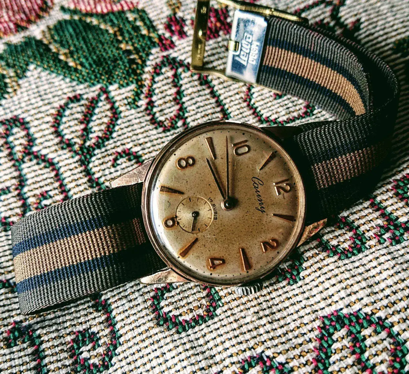 Que bonita la correa (el reloj también), me ha gustado la combinación de colores.¡Buenos días! Día especial, reloj especial, el ruborizado Cauny cursivo