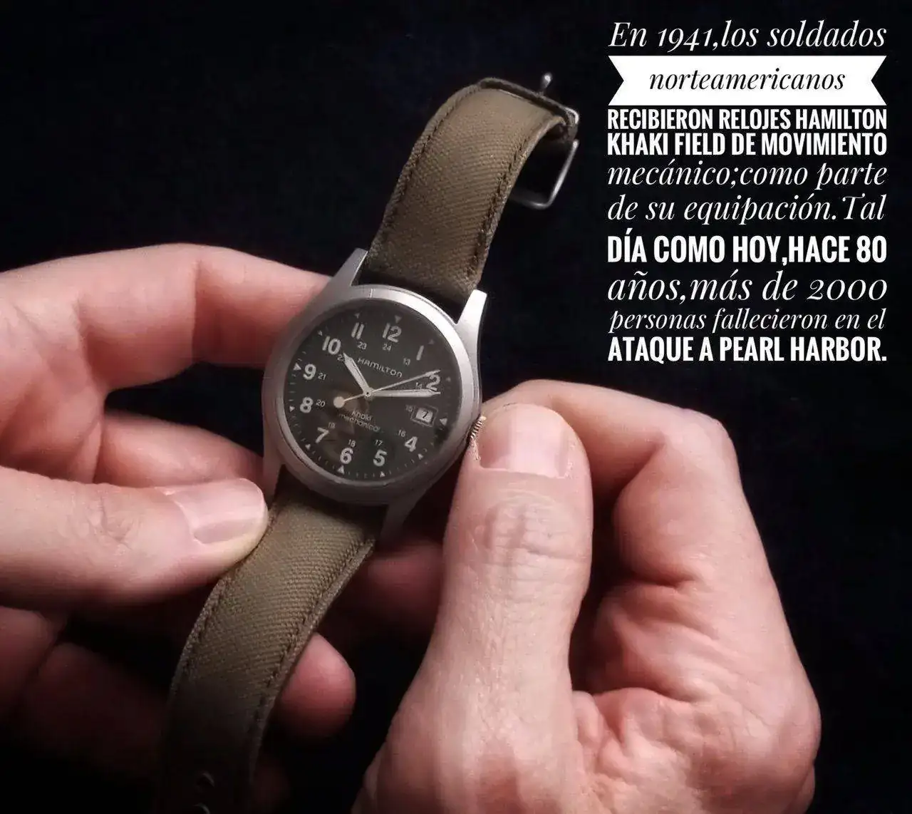 Habría mucho que hablar de por qué se produjo ese ataque y so se verdad destrozó la flota del pacifico americana. El reloj precioso.Hoy, 7 de diciembre, en el 80° aniversario de una fecha decisiva en el devenir de la IIGM, el día de la infamia que diría Roosevelt... apuesto, cómo no, por un Hamilton Khaki.
